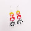 Acești cercei handmade sunt creații unice, atent lucrate din margele fine de nisip, oferindu-le un aspect distinct și elegant. Designul lor imbină armonios nuanțe de alb, galben, portocaliu, rosu, roz, argintiu si negru creand astfel o paletă vibrantă și eleganta. Cerceii sunt susținuți de tortițe argintii, adăugand un touch sofisticat și rafinat intregii piese. Cu această bijuterie, veți aduce cu siguranță un strop de culoare și originalitate oricărei ținute, subliniind stilul dumneavoastră distinct și aprecierea pentru creații handmade de calitate.