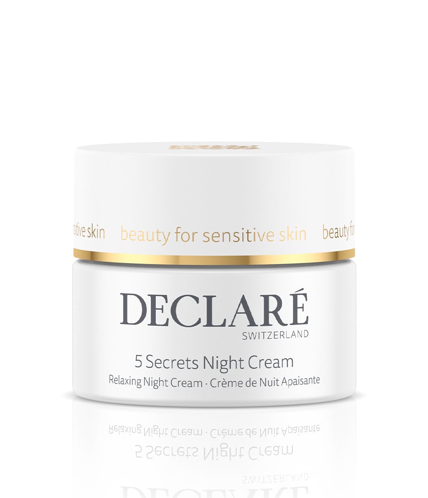 Healthy sleep is important for our well-being and for our skin’s beauty. This nourishing cream combines the five plant extracts, lemon balm, lavender, camomile, sage and St. John’s wort, with aromatic oils of lavender and orange blossom. In this way, it provides wonderful relaxation, intensive moisture and a refreshed complexion. Enjoy the wonderful fragrance – and the relaxed appearance of your skin in the morning. Contains Declaré SRC™ complex.
