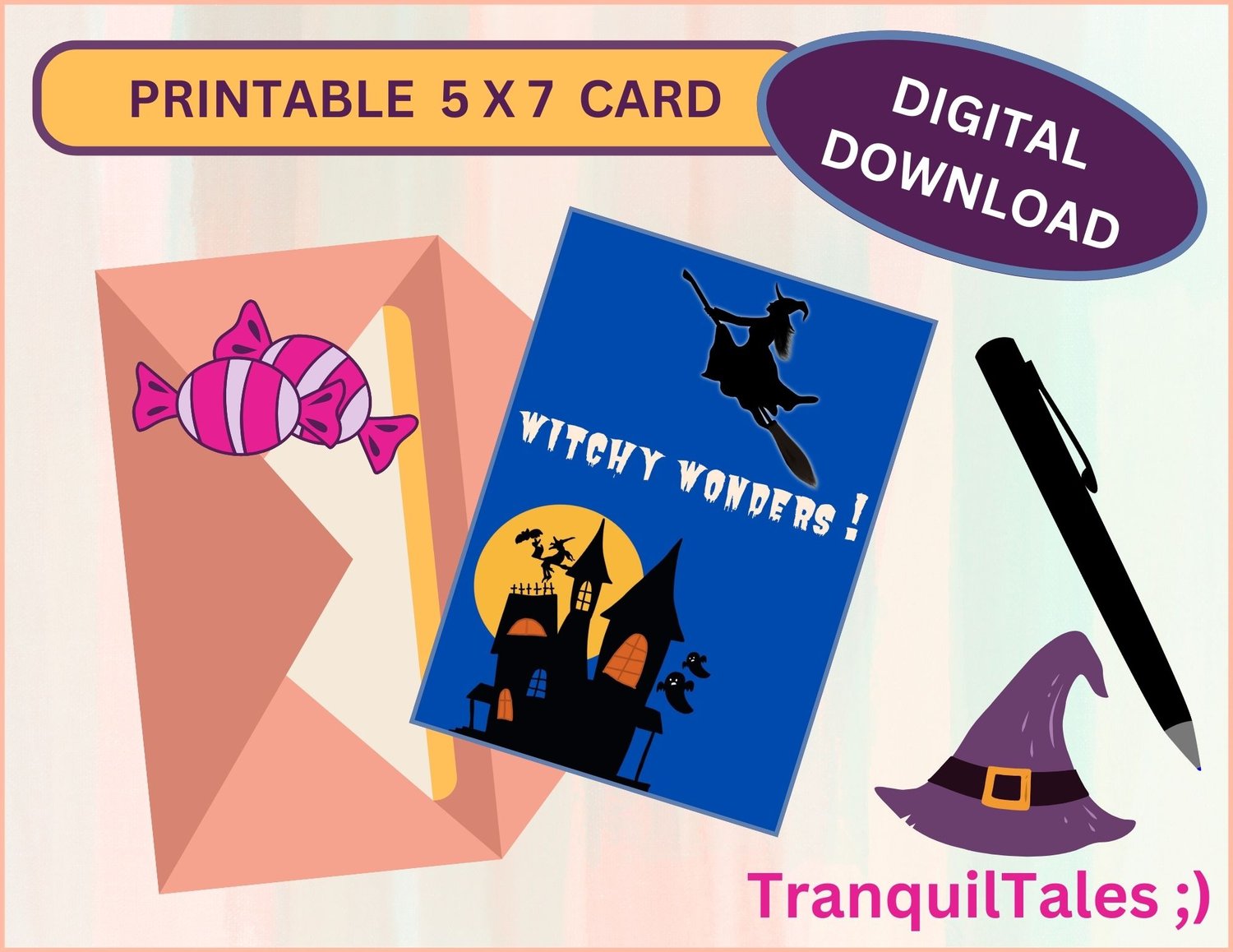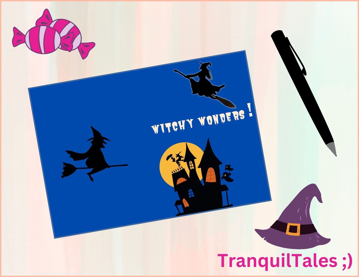 CARD TYPE – Halloween Card for Teenagers / Children - Witchy Wonders - A Card Based On Witch's Theme To Get The Perfect Vibe On Halloween - To Gift Your Close Friends / Family / Brother / Sister Anyone You Like For Halloween Night Making It More Special