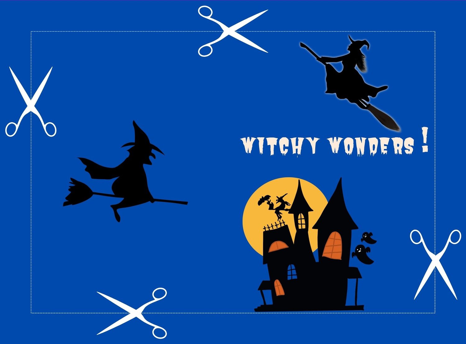 HALLOWEEN CARD FOR TEENAGERS / CHILDREN - WITCHY WONDERS - WITCHY HALLOWEEN GREETING CARD - BLUE BACKGROUND