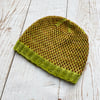 Viera is a simple beanie style hat worked in a two colour slipped stitch pattern that produces a thick fabric and interesting crown pattern.