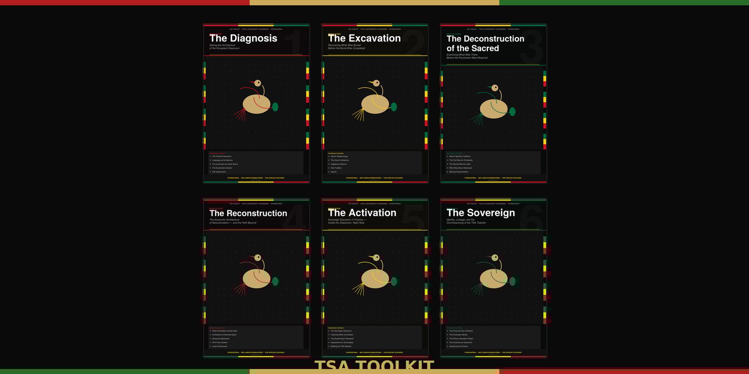 Tags: African education, decolonial teaching, Total Sovereignty Awareness, TSA Toolkit, PowerAfrika, professional development, African teachers, Ghana education, Neo-Liberationism Series, sovereign education, colonial curriculum, teacher training, complete series, bundle