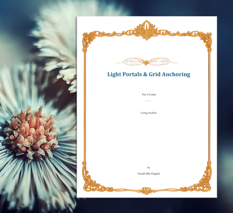 The T4 Codex explores the mapping of Earth’s resonance gateways through Light Portals, emphasizing processes like grid anchoring and sacred rituals. It highlights the dynamics of resonance and the interconnectedness of individual households to the planetary lattice. The document serves as a guide for stabilizing cosmic and planetary flows within communities.