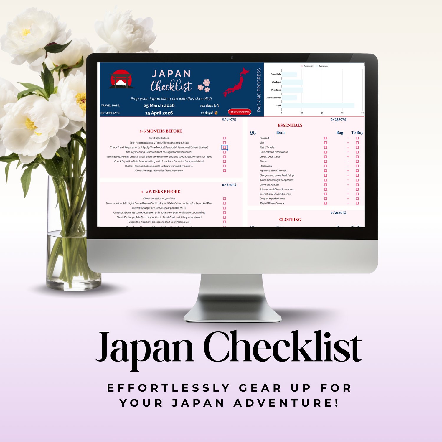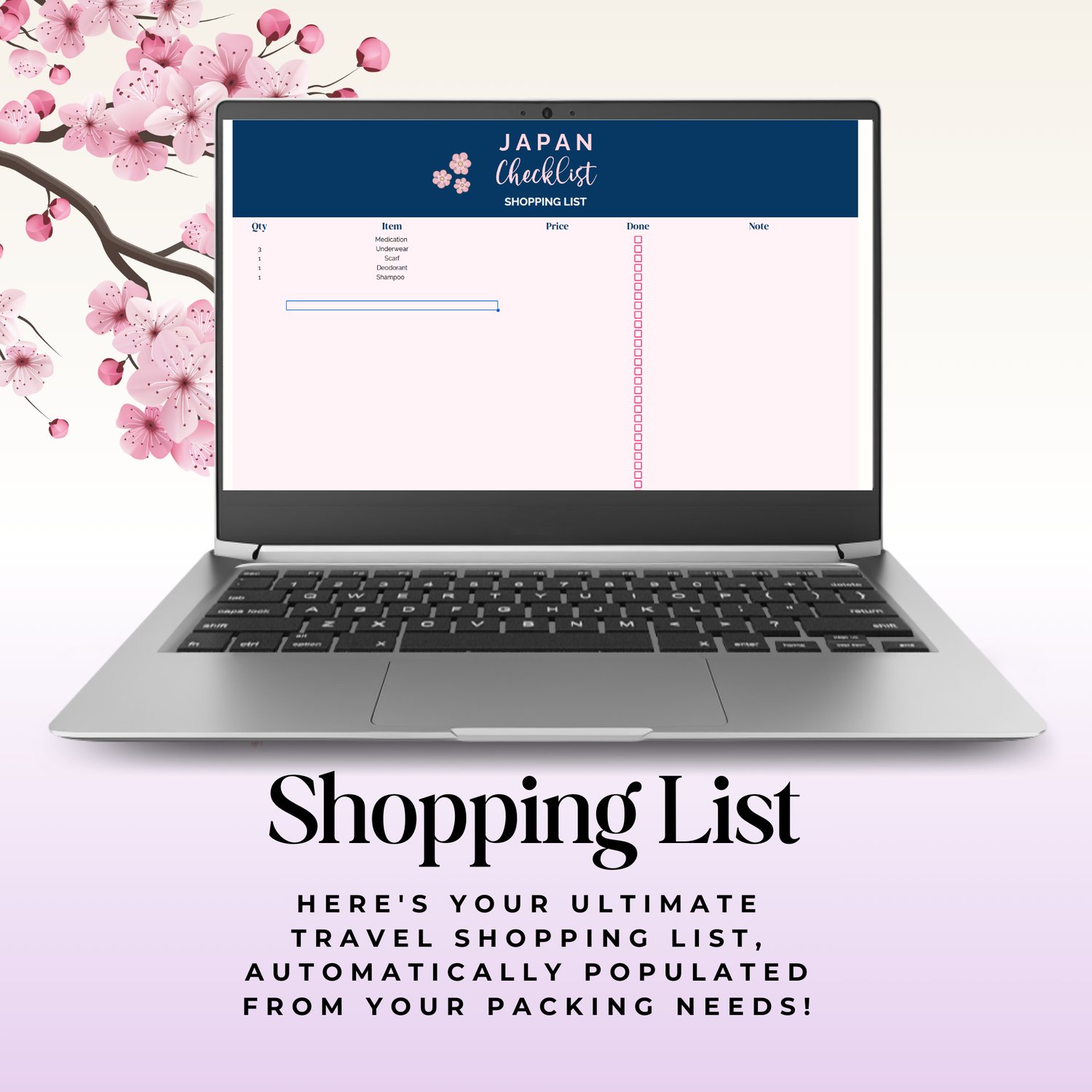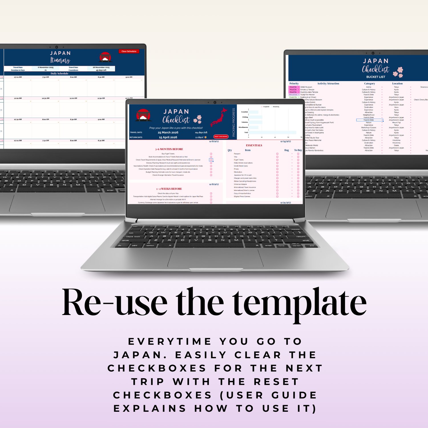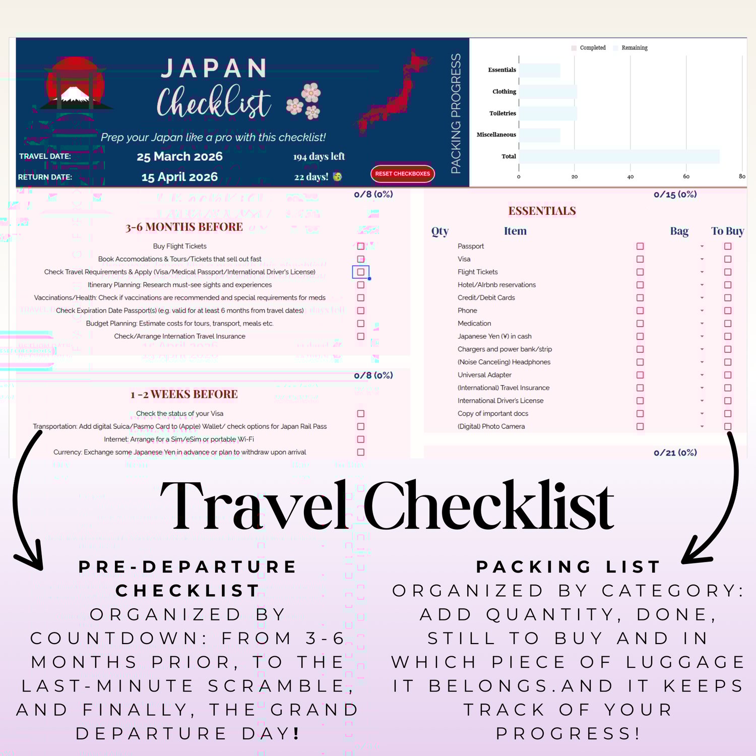 Japan Travel Checklist Spreadsheet
