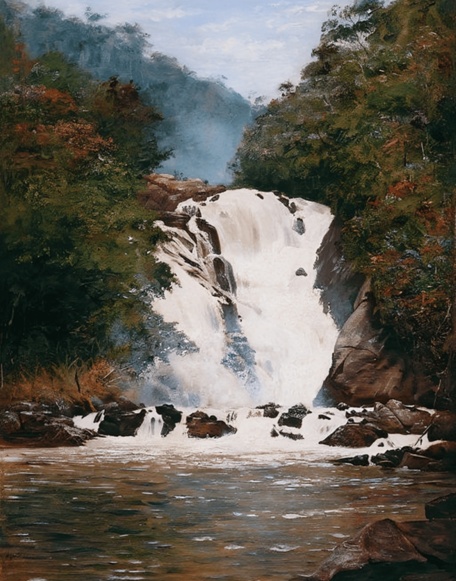 Top Waterfall Painting, Vintage Water Fall Landscape, Nostalgic Nature, Cool Nature, Rustic natural Landscape, Painting.