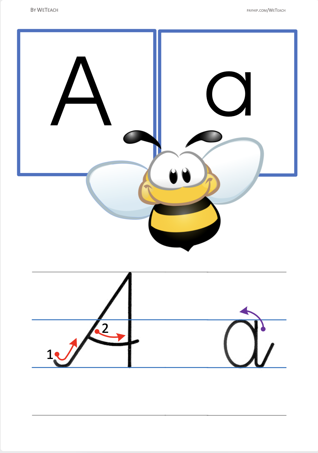 The Alphabet Display: This is an essential classroom resource for our 1st-2nd and 3rd-4th grade students: an alphabet display (26 pages from A to Z) designed to assist them in learning the alphabet and letter formation. Printed in A3 format, this colorful and engaging display shows each uppercase and lowercase letter in a mix of cursive and print styles. Each letter is accompanied by an arrow indicating the direction of writing, providing a valuable guide for children as they develop their writing skills.
