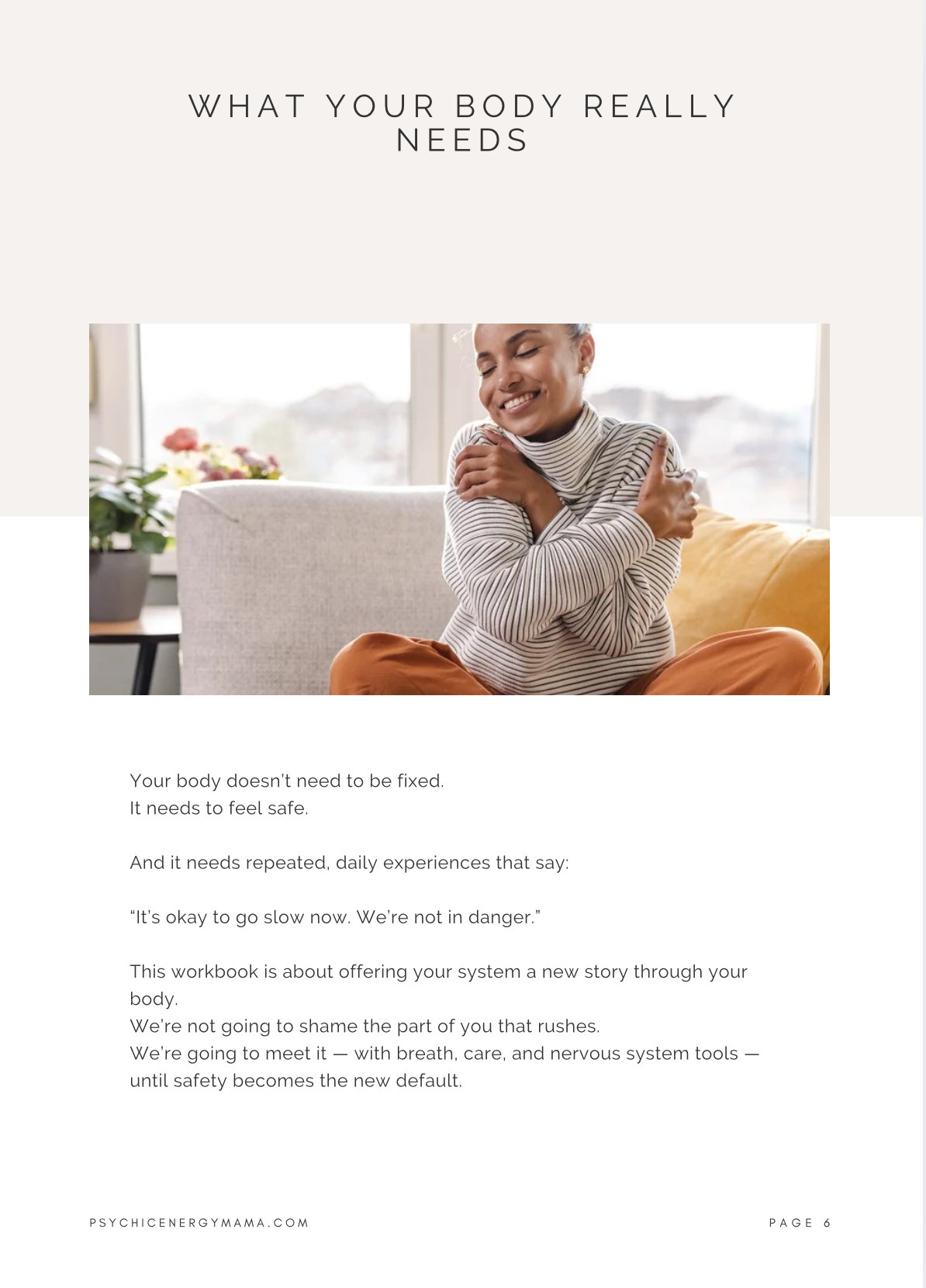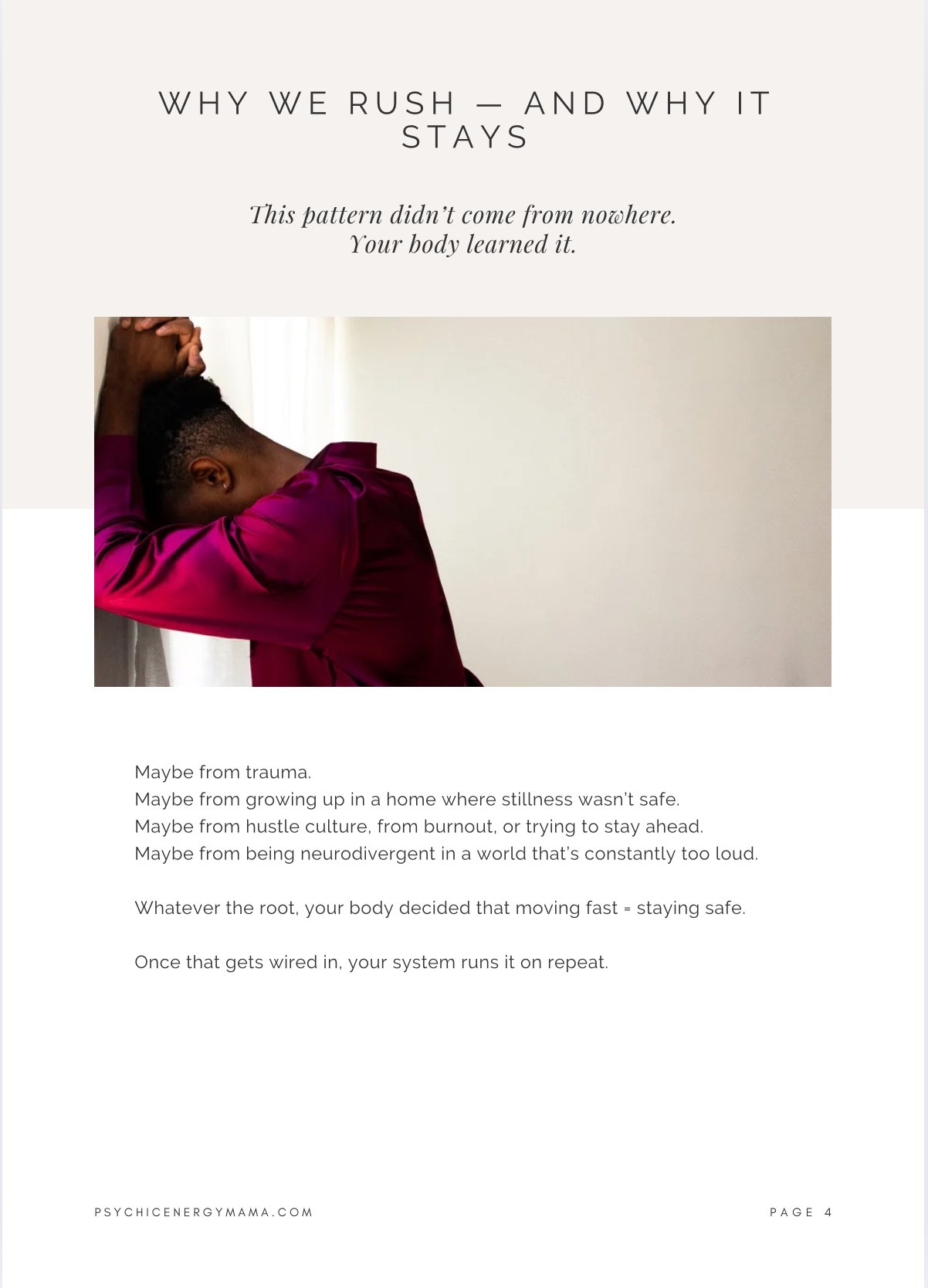 This powerful, 44 page trauma-informed workbook that will help you understand why you feel this way — and give you daily, doable practices to shift it.
