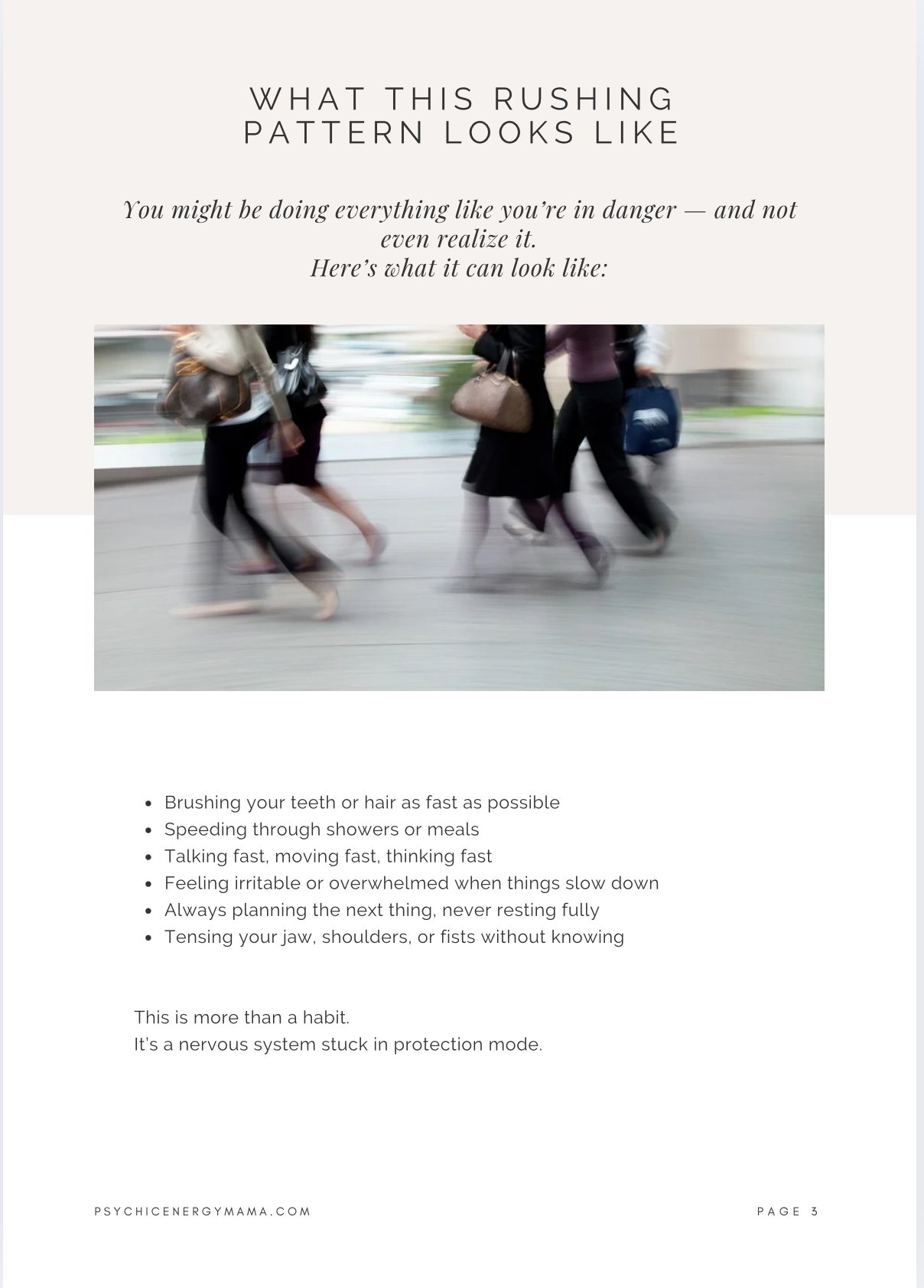 If you find yourself rushing through everything — brushing your teeth, washing your face, talking fast, eating fast, always tense like you’re in danger — this is for you.