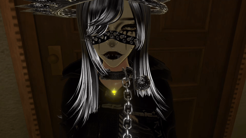Accs:[Umeko VRCFT Piercing Set | Umeko Head] By Kijiio , @fillmypantry , AkamiWaffles/warmers , Free Heart Scope! , Electric Cherry/Spiked halo , Electric Cherry/Spiked Face band , Electric Cherry/ sinned Jewelry , paper.bag/chucky collar