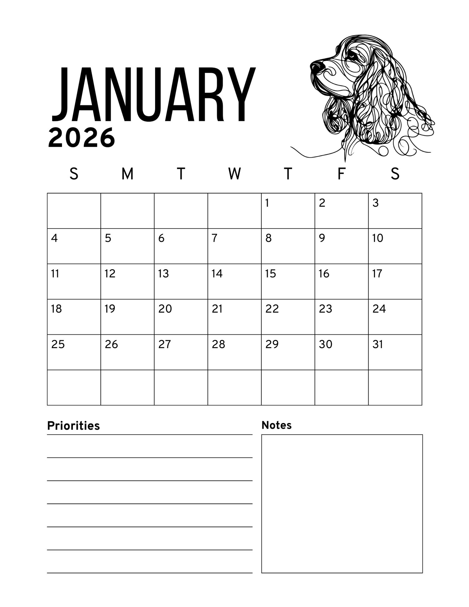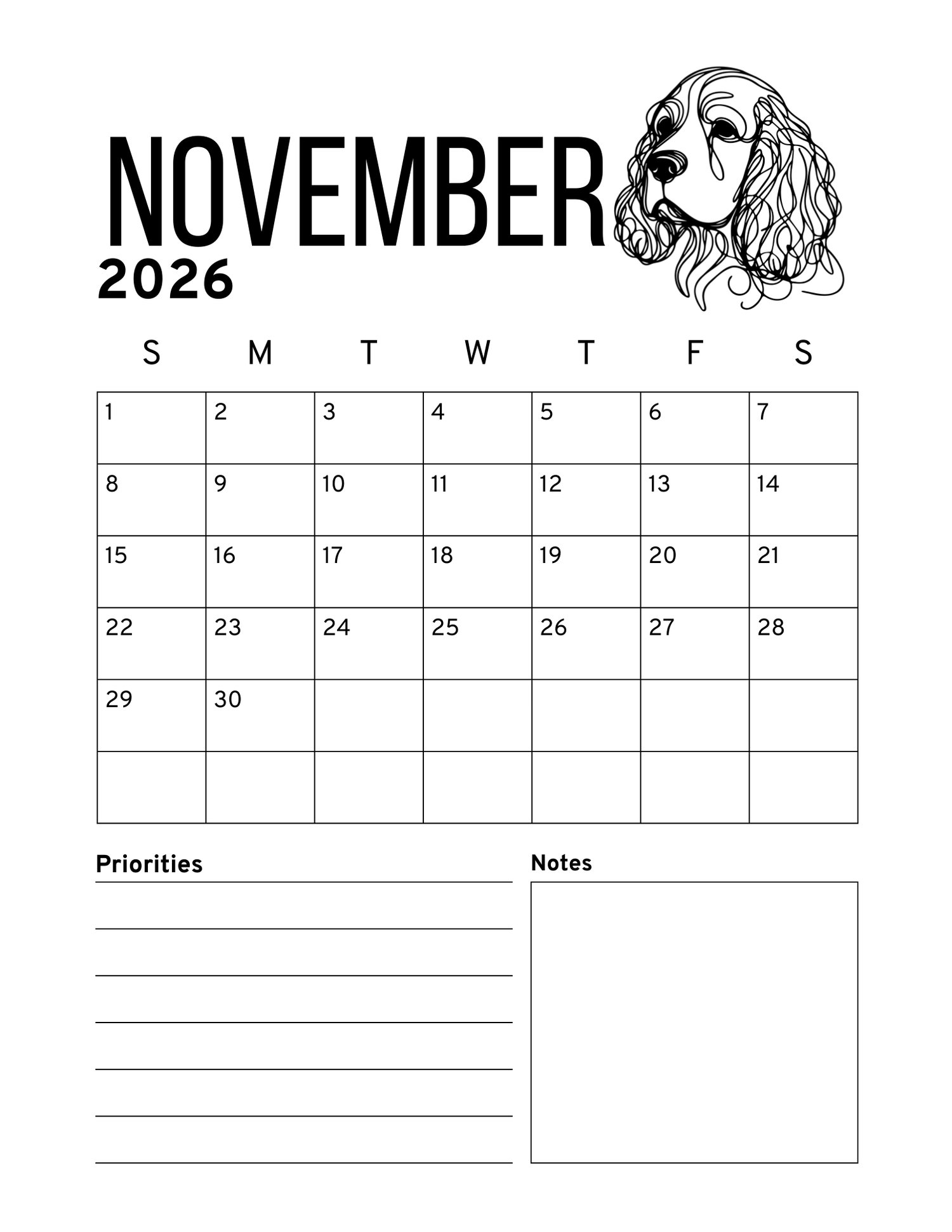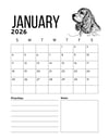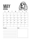 Start the new year with the grace, beauty, and personality of the English Cocker Spaniel! This 2026 printable calendar brings the beloved English Cocker breed to life month after month. Enjoy stunning English Cocker-themed artwork throughout the year, or gift it to a friend who adores this loyal and elegant breed. Simply download, print, and enjoy a full year of English Cocker Spaniel joy.