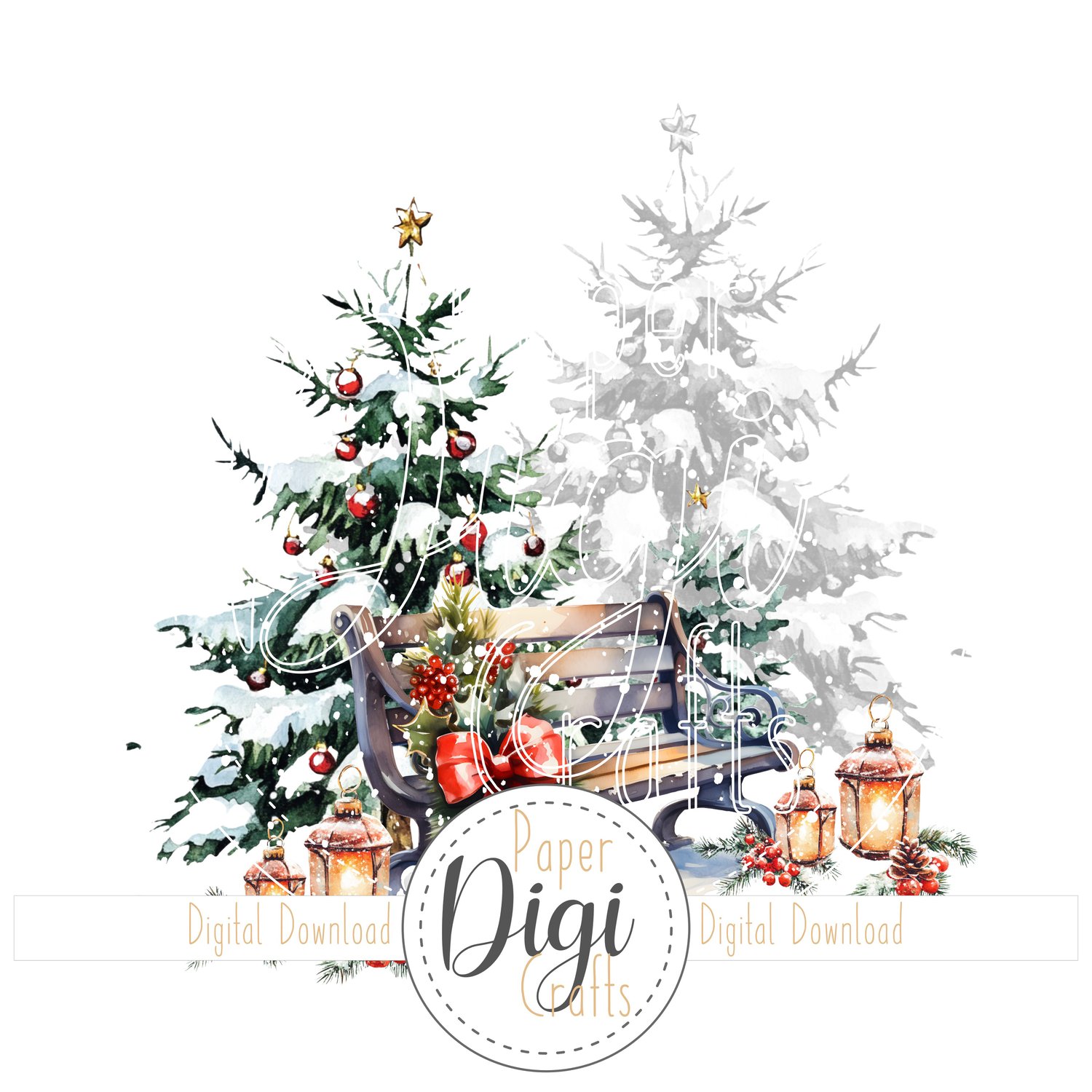 Christmas Bench & Tree | Digital Download | Sublimation Image | Instant Download | Clipart