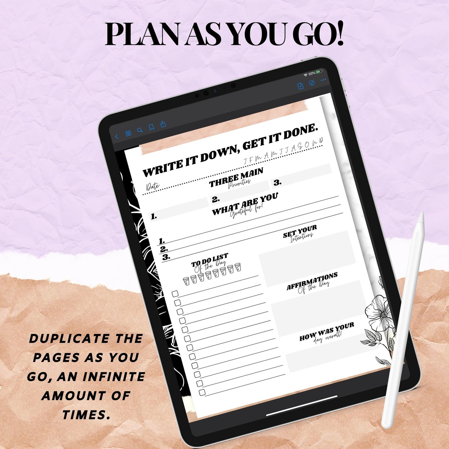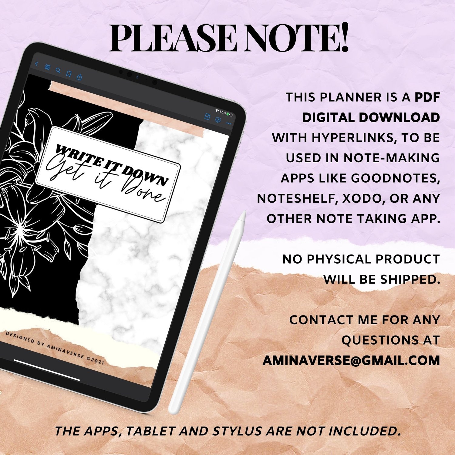 The tablet, stylus and Apps required to use this planner are NOT included in your purchase.