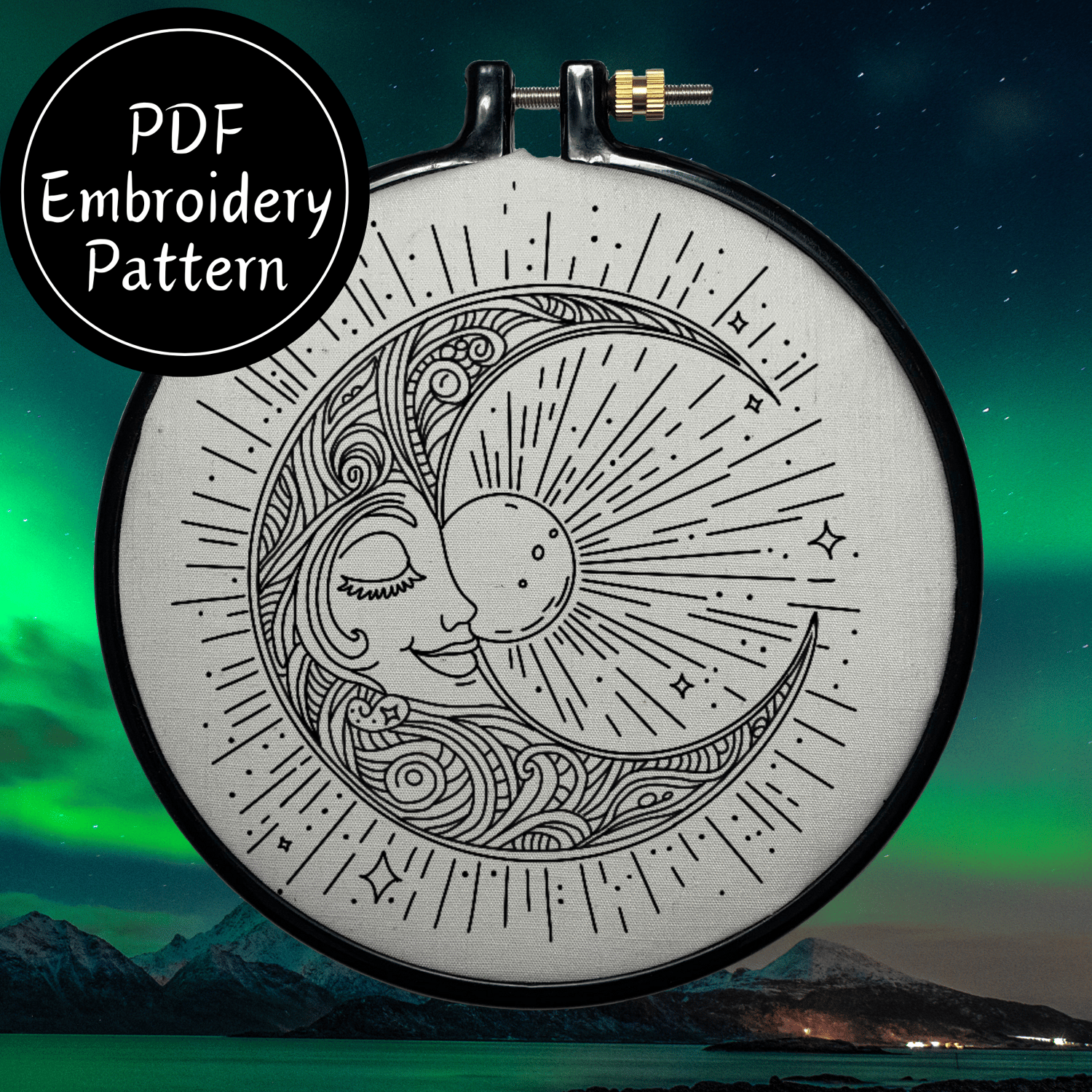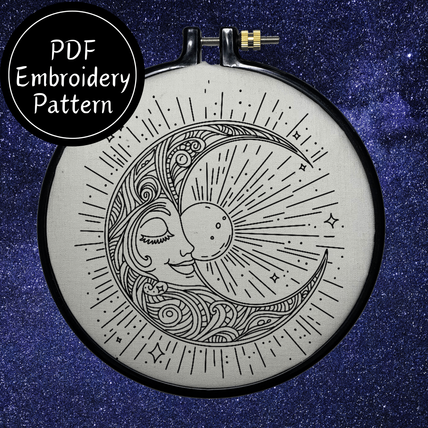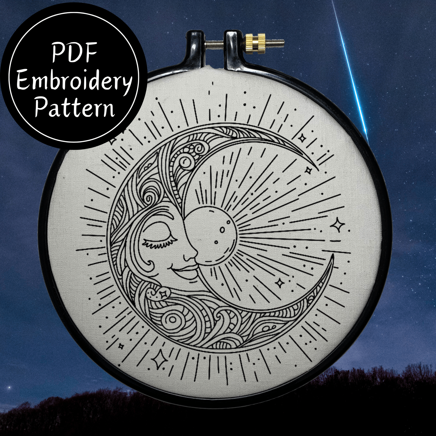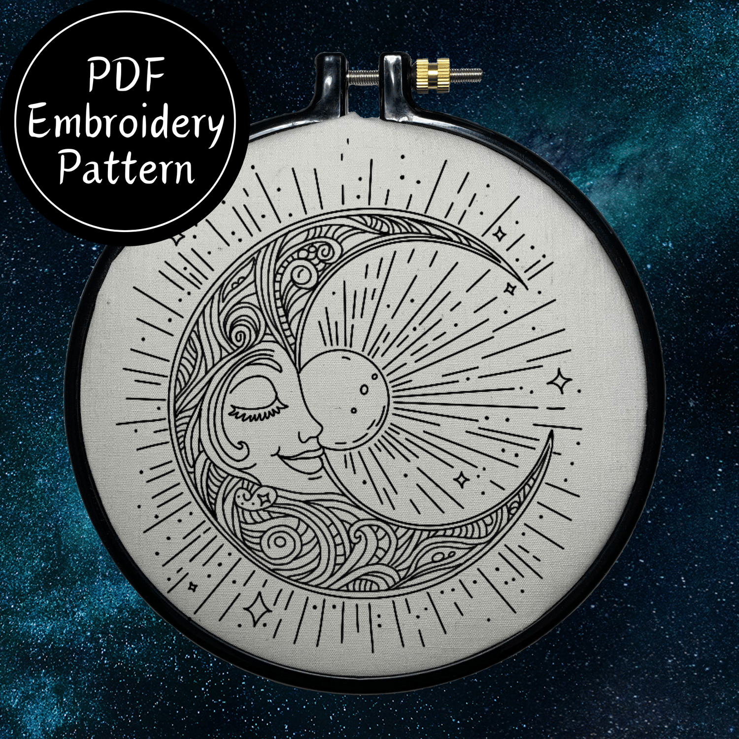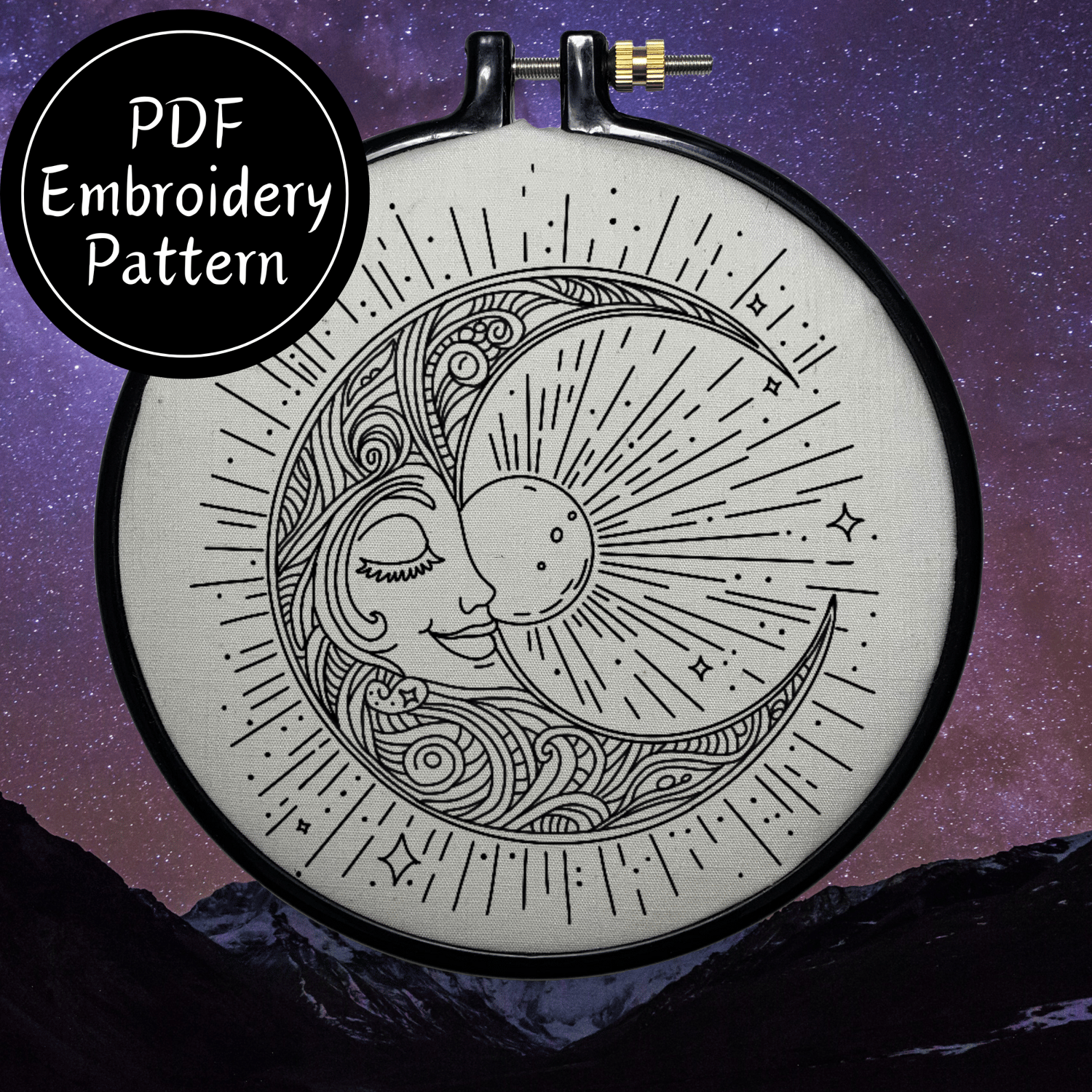 Bohemian Sun And Moon Hand Embroidery Pattern DIY Embroidery