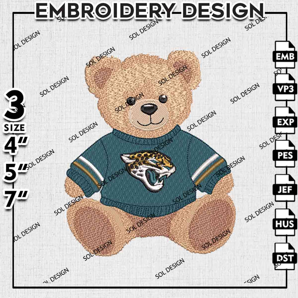 Jacksonville Jaguars Team Teddy Bear Logo Embroidery Designs, NFL Jacksonville Jaguars Embroidery Files, NFL Jaguars Logo Embroidery, National Football League Machine Embroidery Design, Cute Teddy Bear Sport Designs, Digital Do