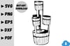 Combination of wood buckets for flowers SVG, Hand drawing wood buckets for flowers SVG, Japanese wood buckets for flowers SVG.