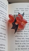 Deep red resin balloon dog with alternative style added, black bat wings just make this piece adorable
