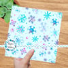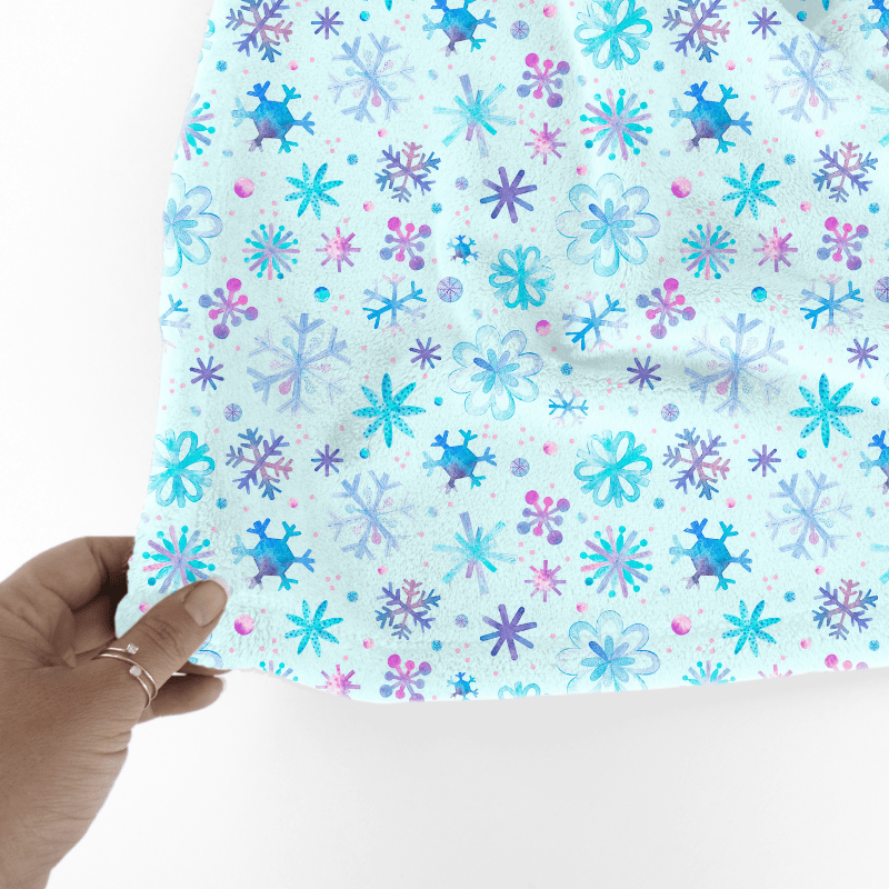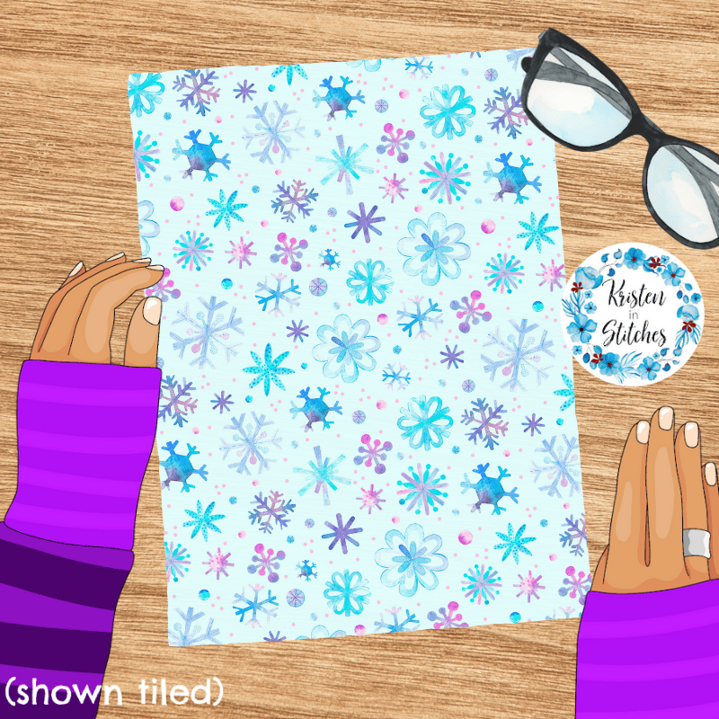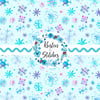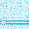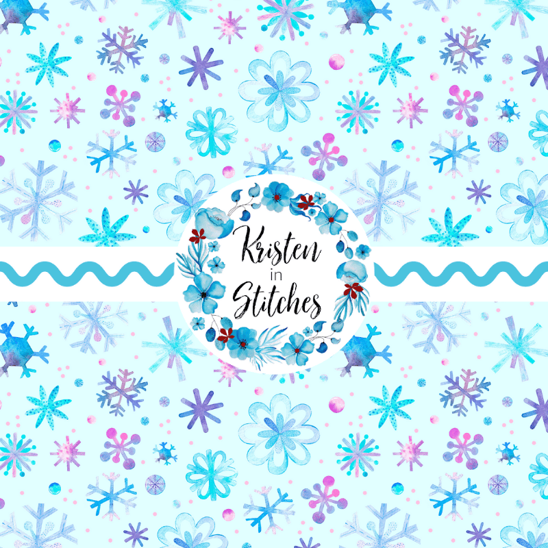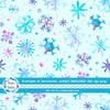 Pretty blue and purple watercolor snowflakes on baby ice blue.