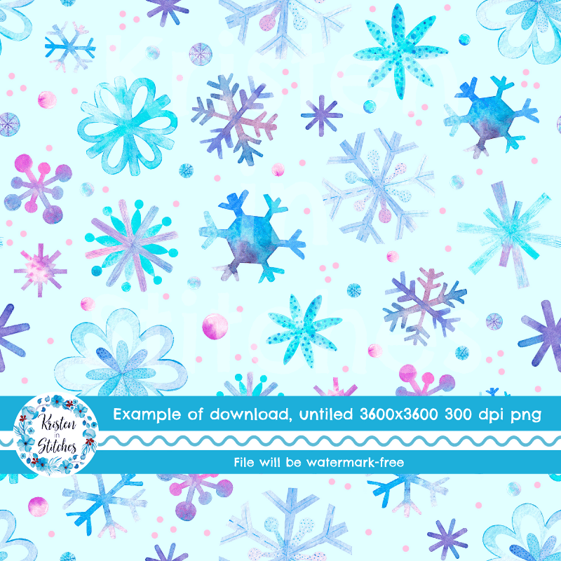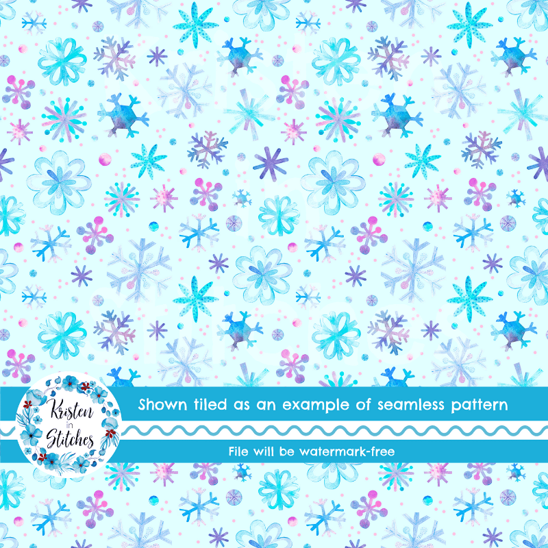 Pretty Watercolor Snowflakes Winter Holidays Seamless Pattern
