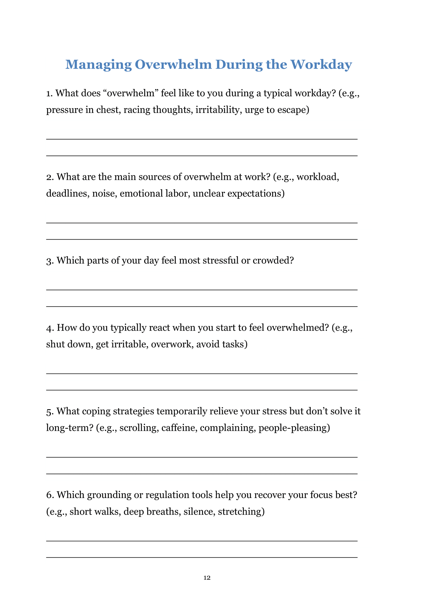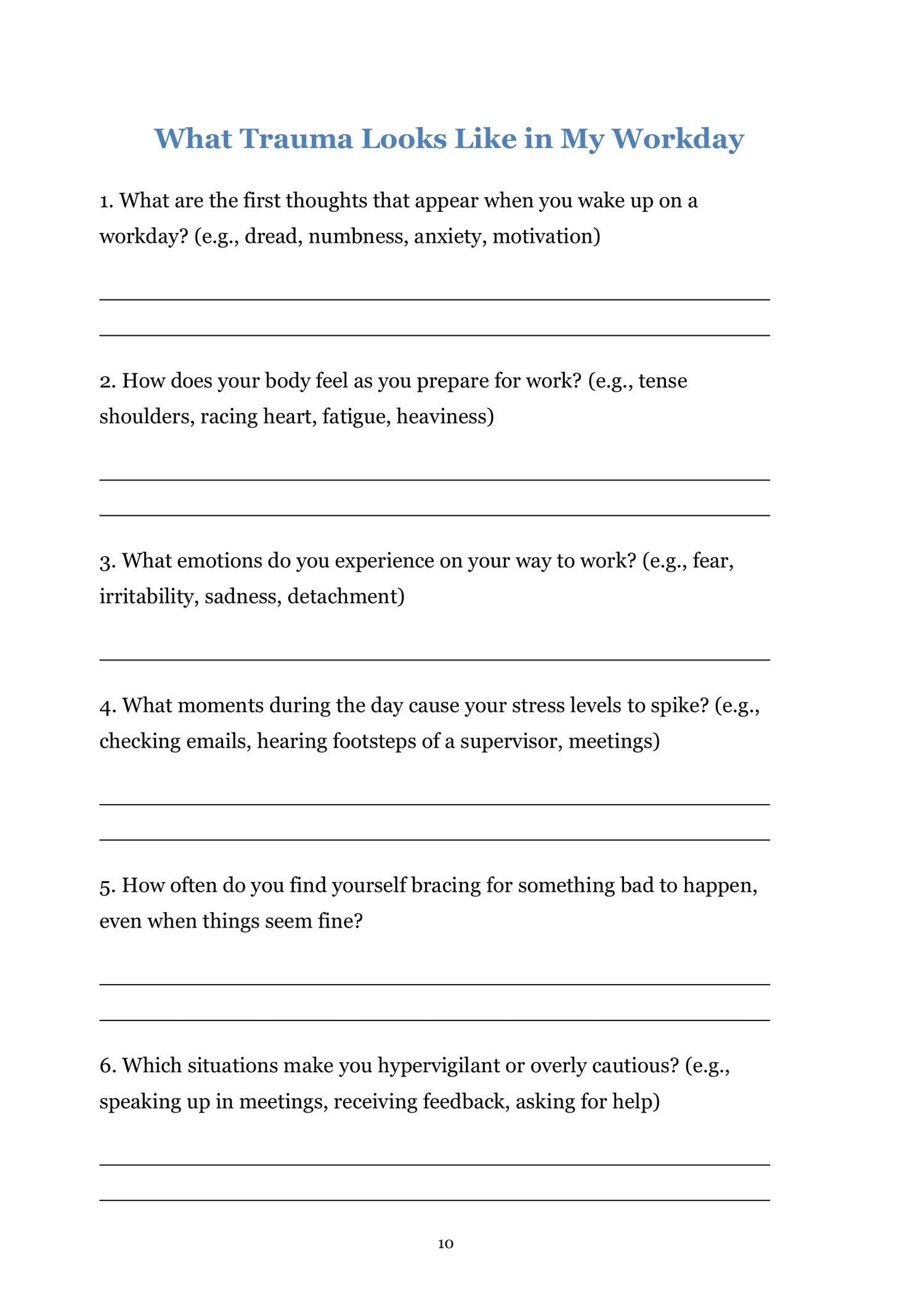 If so, the Workplace Trauma Worksheets are here to help you process what happened, rebuild confidence, and restore your sense of safety, balance, and self-worth.