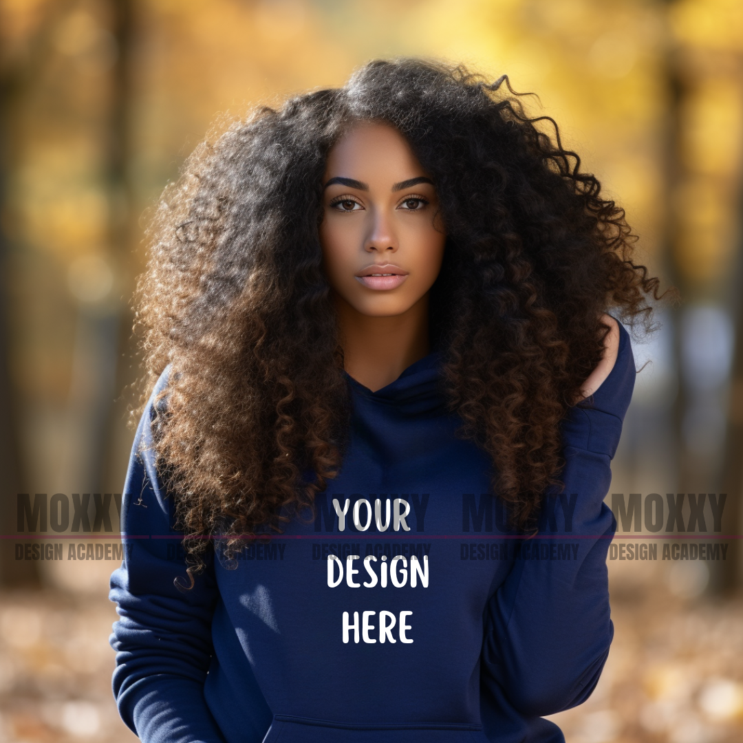 Black Woman Mockup, Navy Blue Hoodie Mockup, Fall Mockup, Black Woman Hoodie Mockup