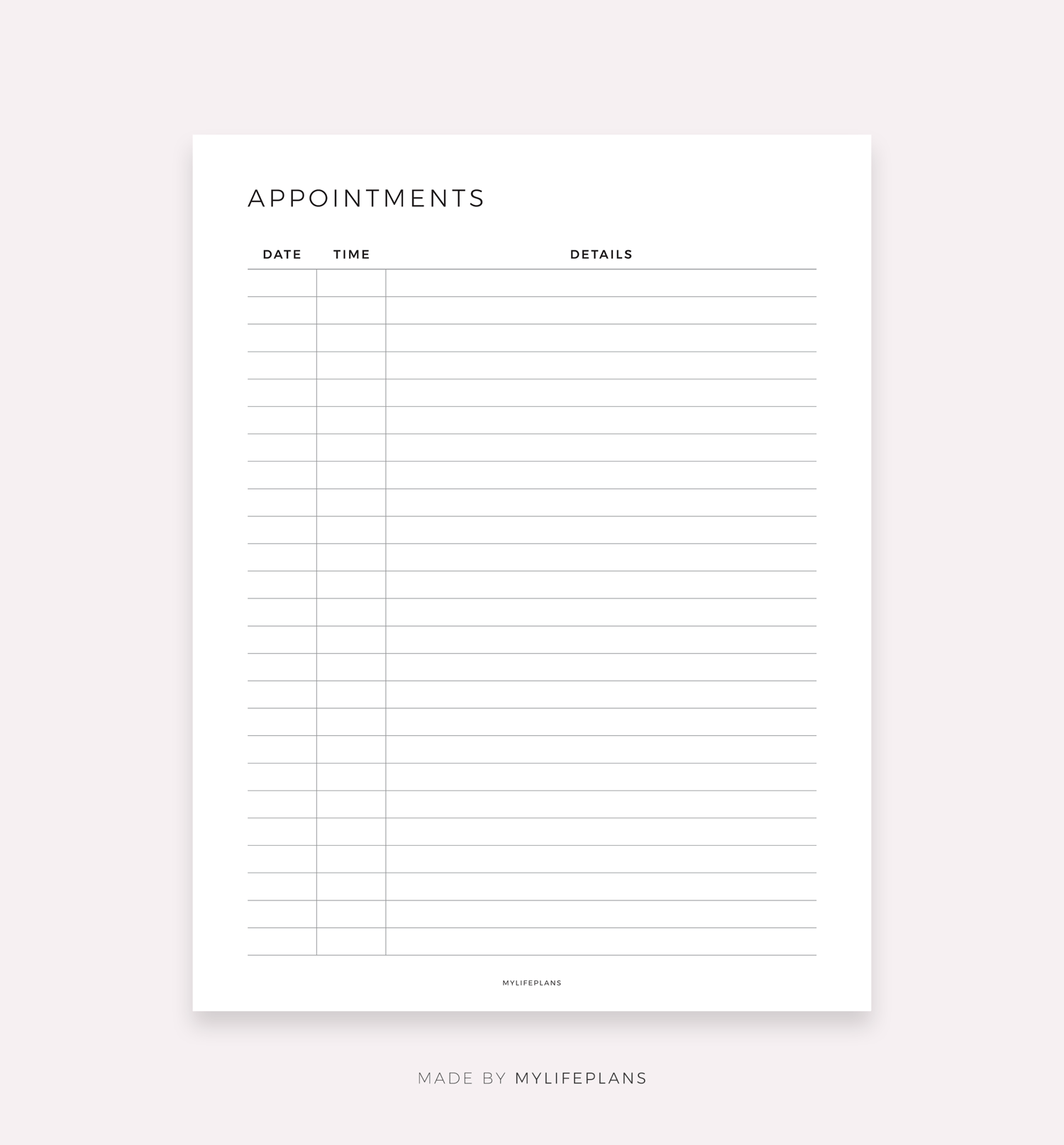 Simple Appointment Tracker, Digital Template for Goodnotes, Notability, Ipad