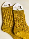 Socks with a lace pattern, toe up & using the afterthought heel method.