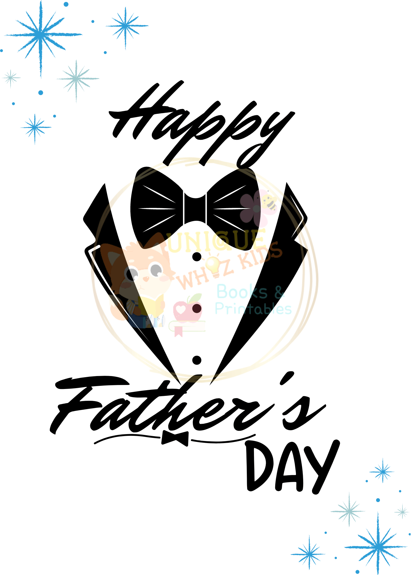Black & White Bowtie Father's Day Card, Printable Greeting Card, Digital Download