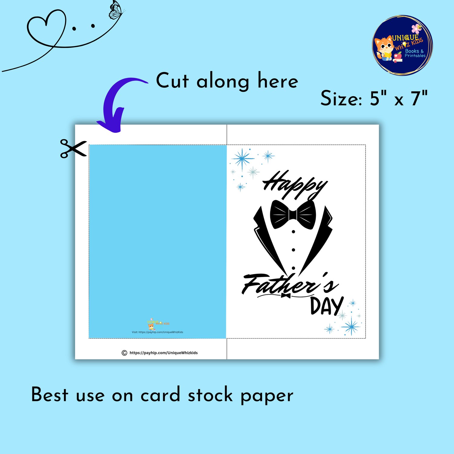 Sizes: 8.5'' x 11'' paper, trims to 5'' x 7'' card.