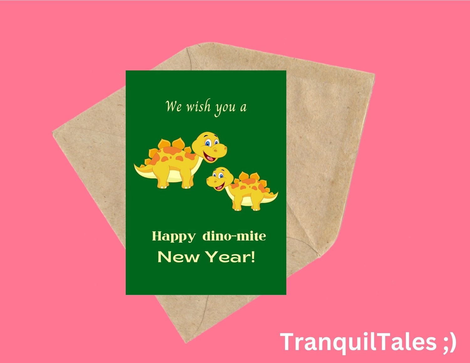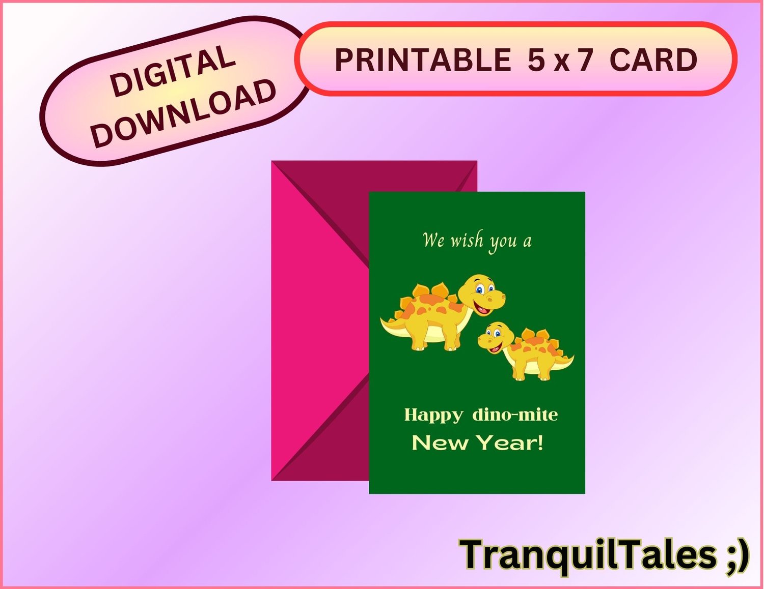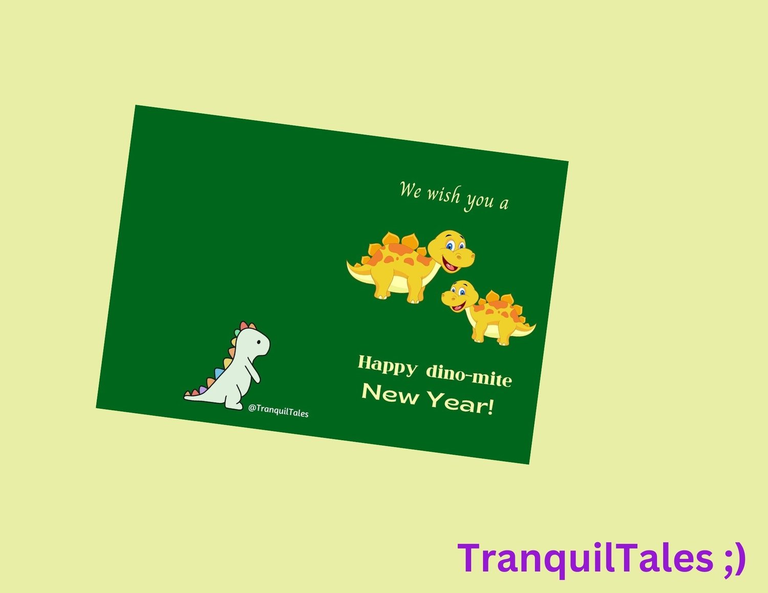 We wish you a Happy dino-mite New Year! Card - 5" x 7" inches - New Year card - PDF File