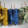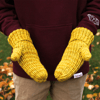 No increasing or decreasing required in this super simple mitten pattern that has become a top seller. Worked in a bulky yarn, these mittens are quick and easy with an afterthought thumb and yarn threaded through the top of the hand and then again later through the top of the thumb to draw each closed. Worked in a stretchy 1x1 rib, the three sizes provided will fit a wide range of hands. Left and right mittens are identical. This easy pattern is worked in the round.