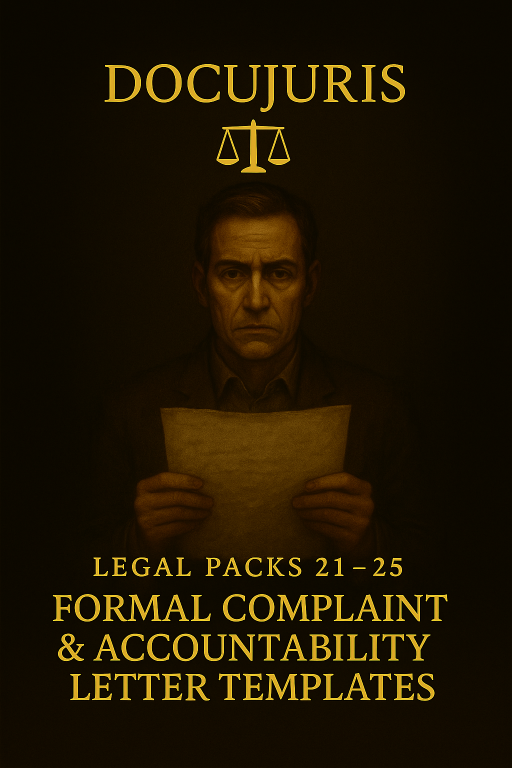 This set includes Legal Packs 26 to 30 from the DocuJuris library, focusing on personal finance challenges such as debt disputes, unfair fines, refund claims, and enforcement action. Each pack is equipped with legally sound templates, instructions, and references—designed to help users take immediate and effective action against financial pressure and unlawful charges.
