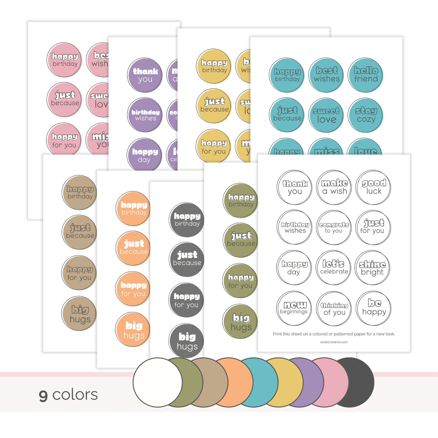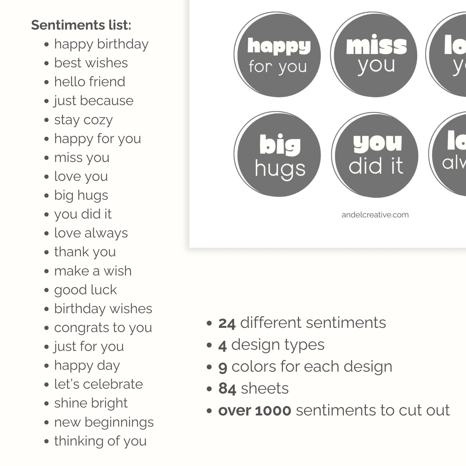 Each sentiment comes in four different styles (grey font, white font, color shadow font, white shadow font), and each style in 9 colors.