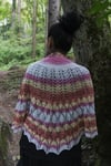 A lightweight lacy shawlette that is the perfect solution for layering in summer but also a great pattern for your holidays. This shawlette has an half-PI top down construction that makes it easy to knit. A few increase rows (all worked in the same way) make the pattern go wider giving shape to the shawl and separating the various stitch patterns into areas. Once you memorized the pattern for the area you are knitting you can just cruise along to the next increase. I suggest using a few lifelines as you knit to secure stitches while working the intricate stitches required by this pattern. For a larger shawl, work rows 3 and 4 of the final border pattern for more times.