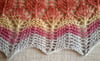 Un piccolo scialle leggero, la perfetta soluzione per l’estate, ma anche un grande modello da portare con sé in vacanza. Questo scialle è costruito top-down con il metodo half-PI che lo rende particolarmente facile da eseguire. Pochi ferri di aumenti (tutti lavorati nella medesima maniera) allargano progressivamente lo scialle e separano le aree lavorate nei vari punti. Una volta memorizzato il motivo dell’area in corso vi sarà facile proseguire fino all’aumento successivo. Suggerisco di inserire alcune lifeline nel corso del lavoro per ridurre il rischio di perdere parti importanti di lavoro a causa degli errori. Per ottenere uno scialle più grande, consiglio di ampliare il motivo finale lavorando un numero superiore di volte i ferri 3 e 4 dell’ultima parte del bordo.