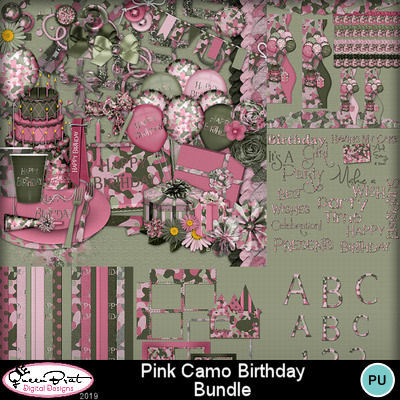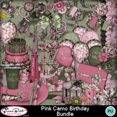 A country girl's dream birthday kit! Kit is done in pink and green camo with accents of glitter and lace. Includes everything you need to celebrate with cakes, plates, forks, cups, hat & horn, gifts, and much more. Also includes a full monogram. This is a must have birthday kit for that special girl in your life!