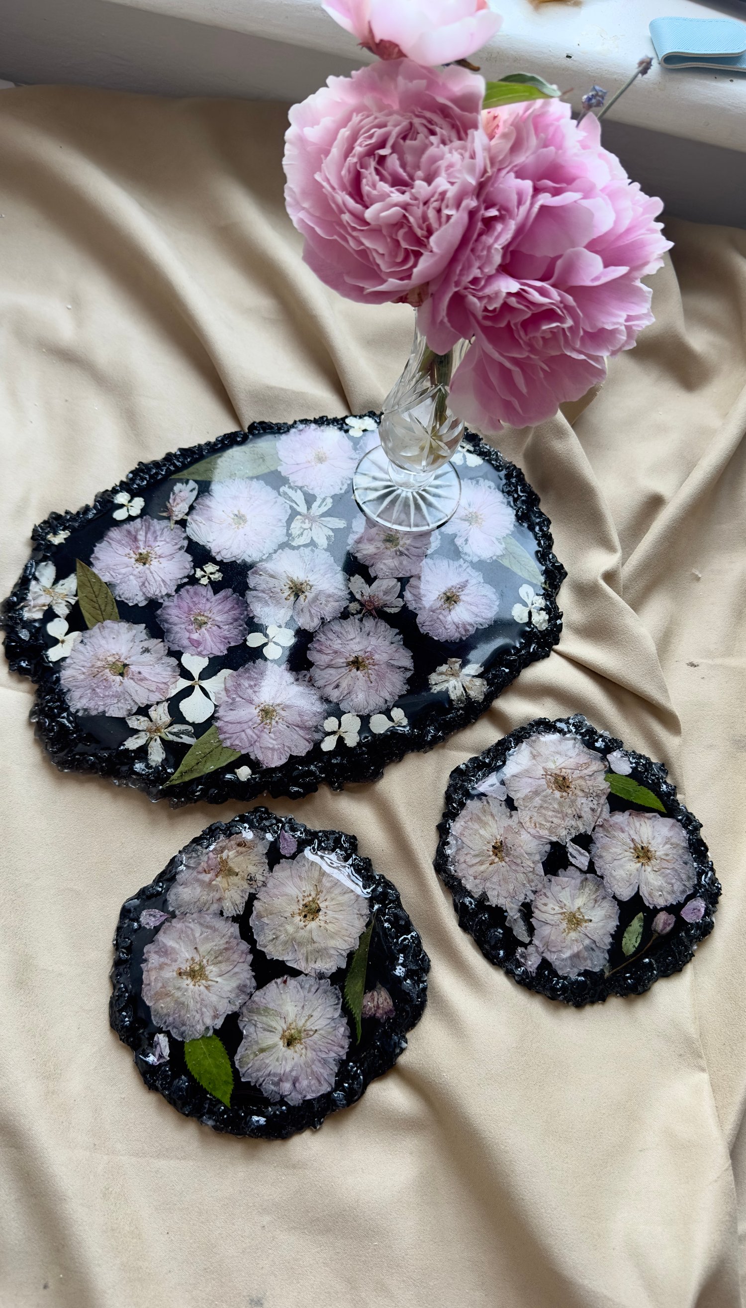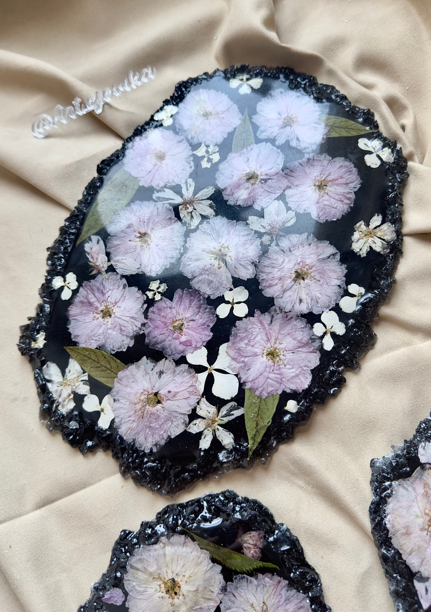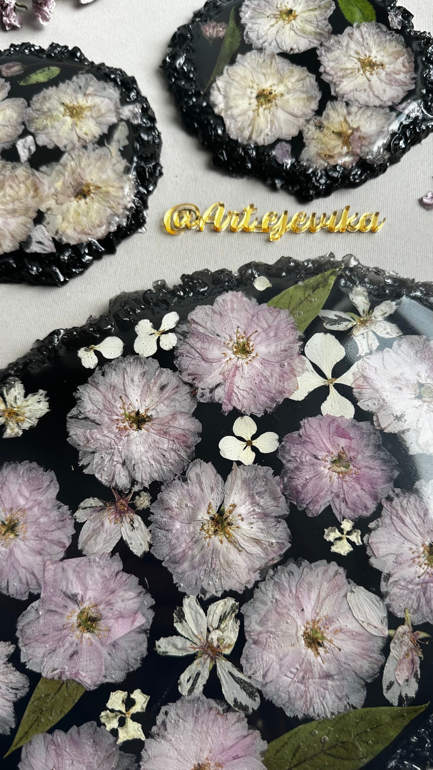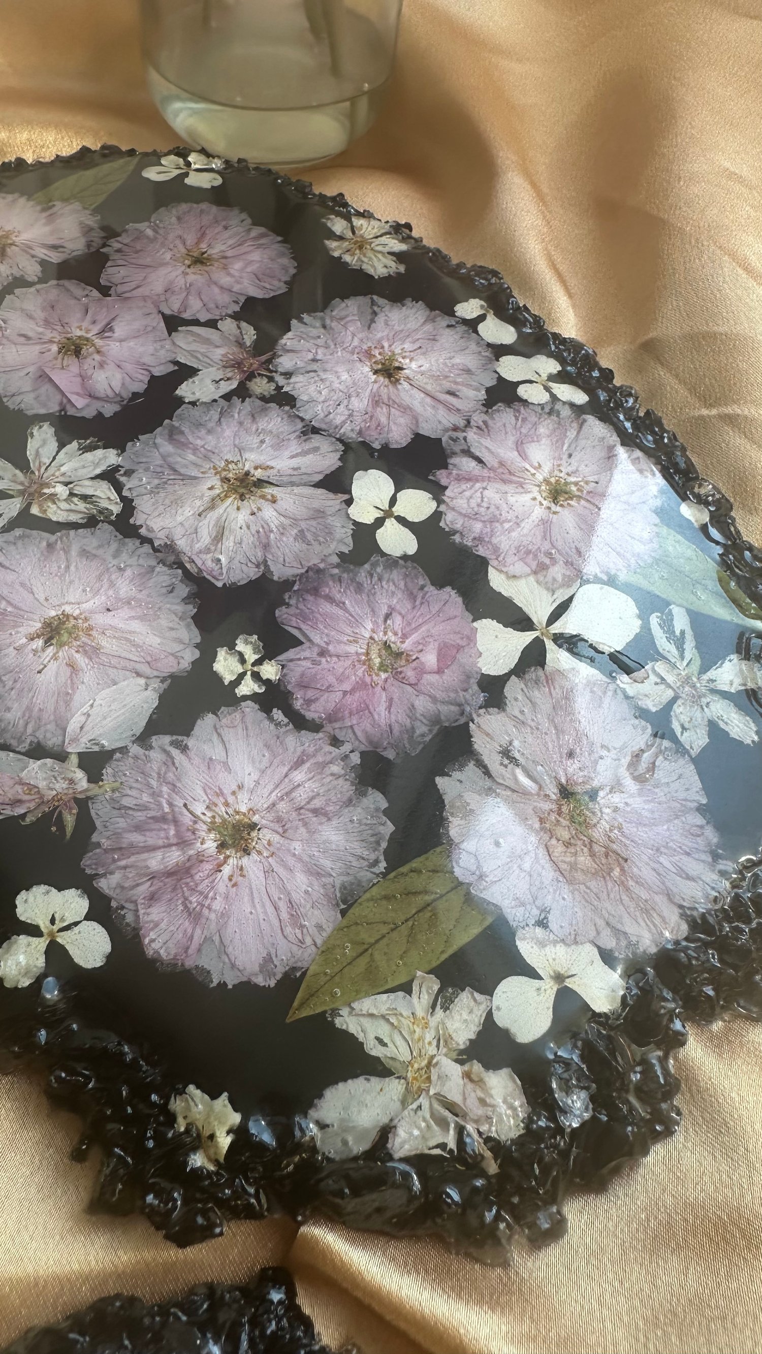 Each petal in this tray is real. The cherry blossoms were carefully handpicked and dried, then forever preserved in crystal-clear resin — as if frozen under moonlight.