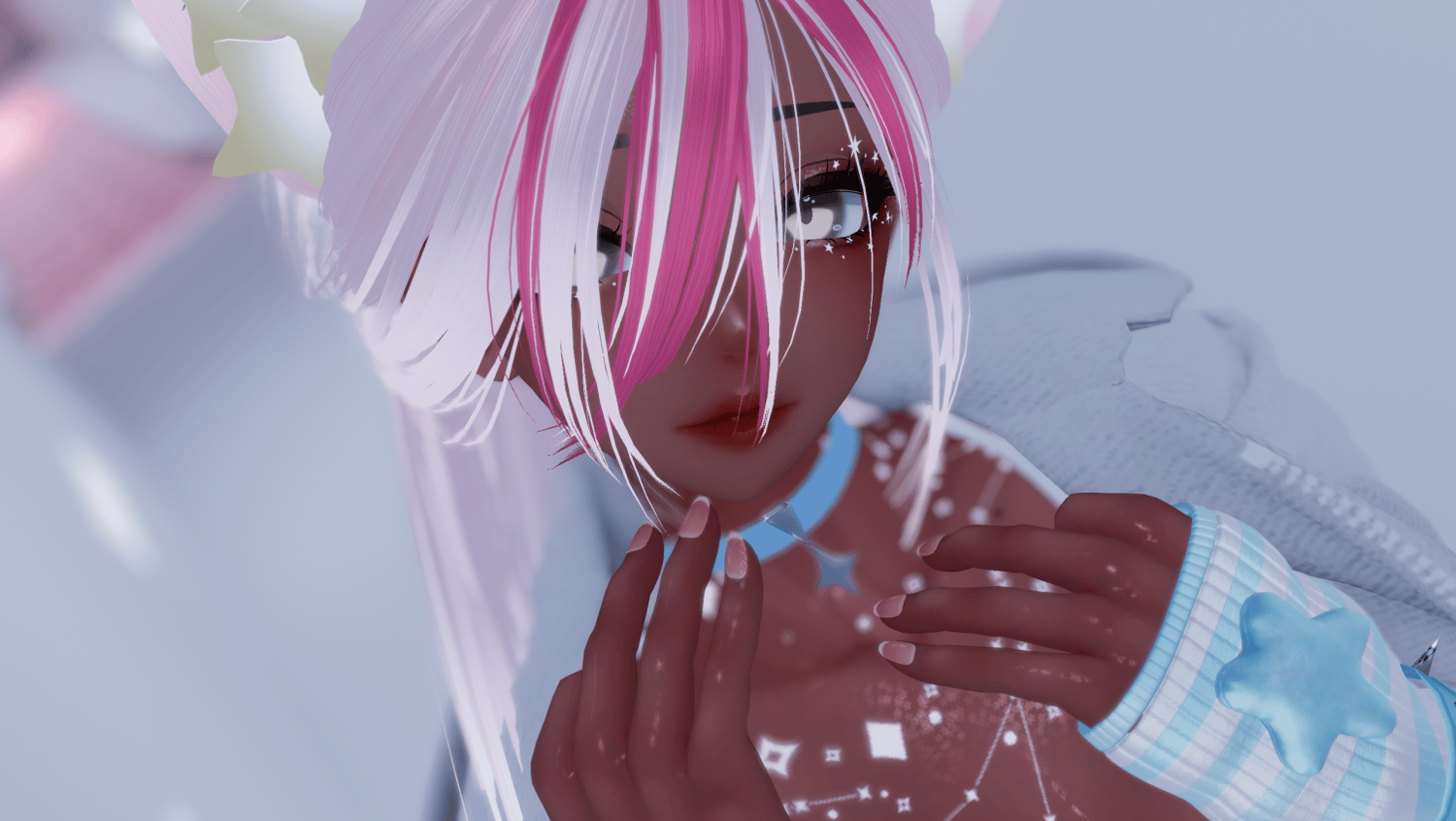 ✦ Head - Sleepy ✦ Makeup - lilissleepin✦ Star Eyes - cryptic cloud ✦ Body - Zinpia ✦ Tattoos - murdermoth ✦ Iris hair - River ✦ Clip Hair - Nessy ✦ Long Hair - Nessy ✦ Pup Set - River ✦ Halo - independent ✦ Collar - me ✦ Sweater - Saikura ✦ Crop Top - me ✦ Tank top - Yamu ✦ Hoodie - Saikura ✦ Star Set - MilkyMutt ✦ Pants - Saikura ✦ Sneakers - Mondei ✦ Slippers - seo ✦ Paws - Moo's Market ✦ World Drop - Soleia ✦ Flow toys - SerenitysGarden✦ Gestures -Phawksea ✦ Sfw overlay - GM ✦ Particals - pixeltopia ✦