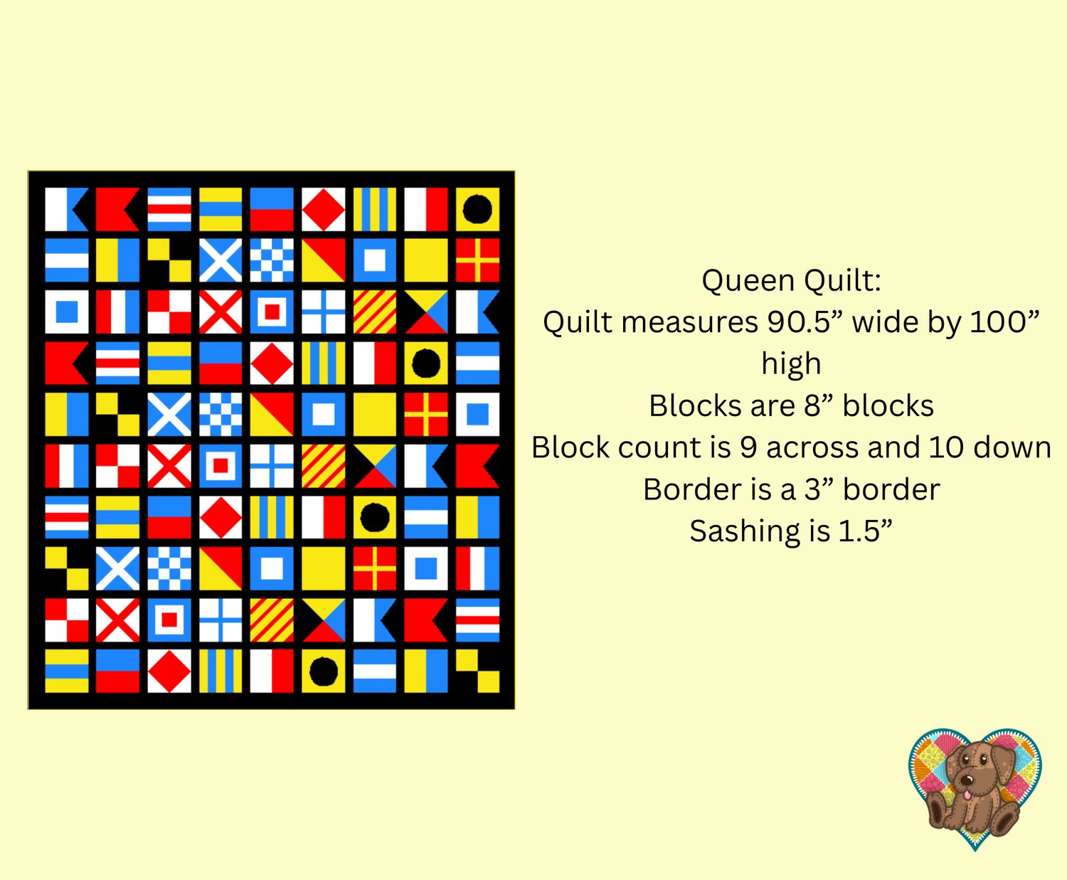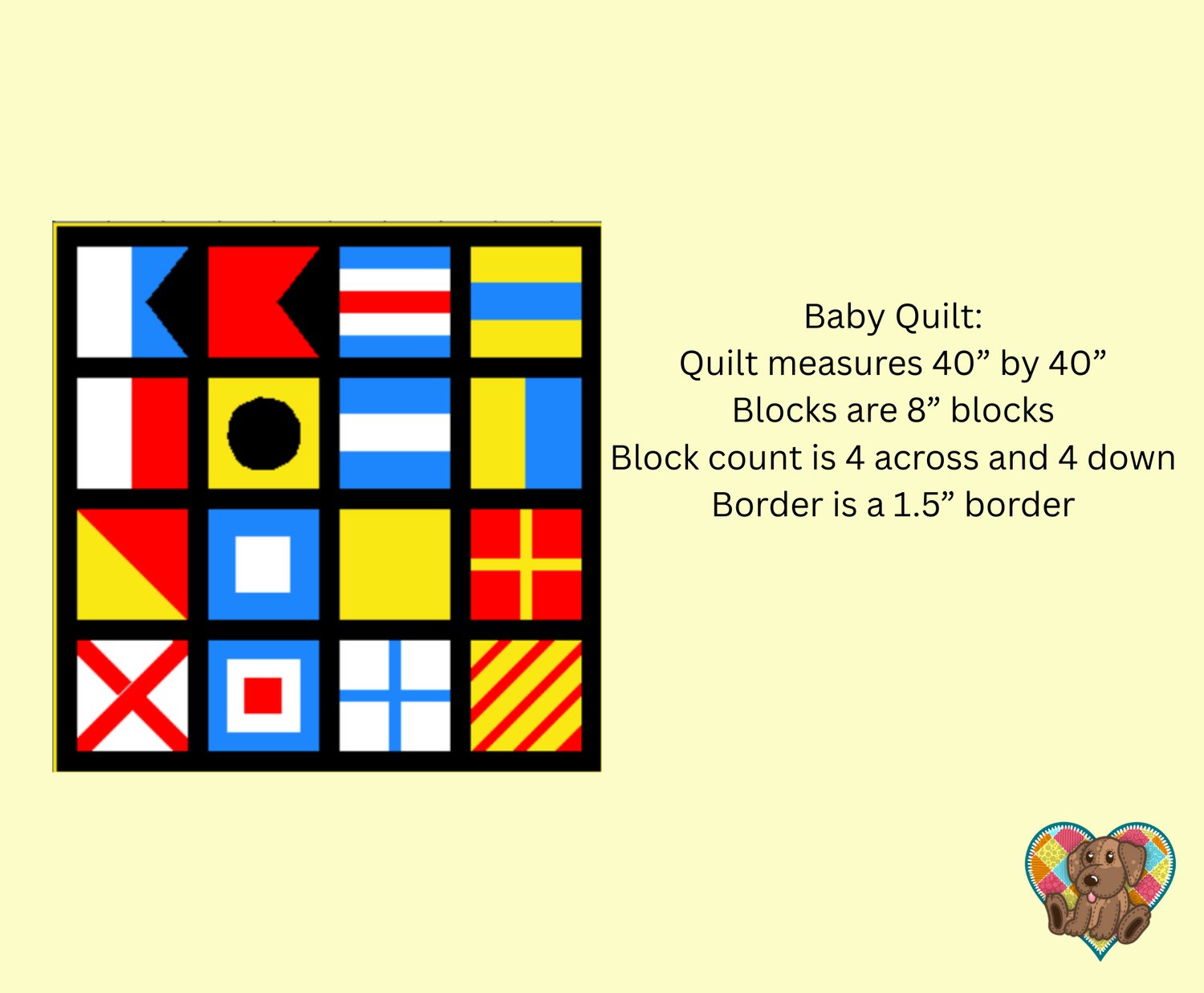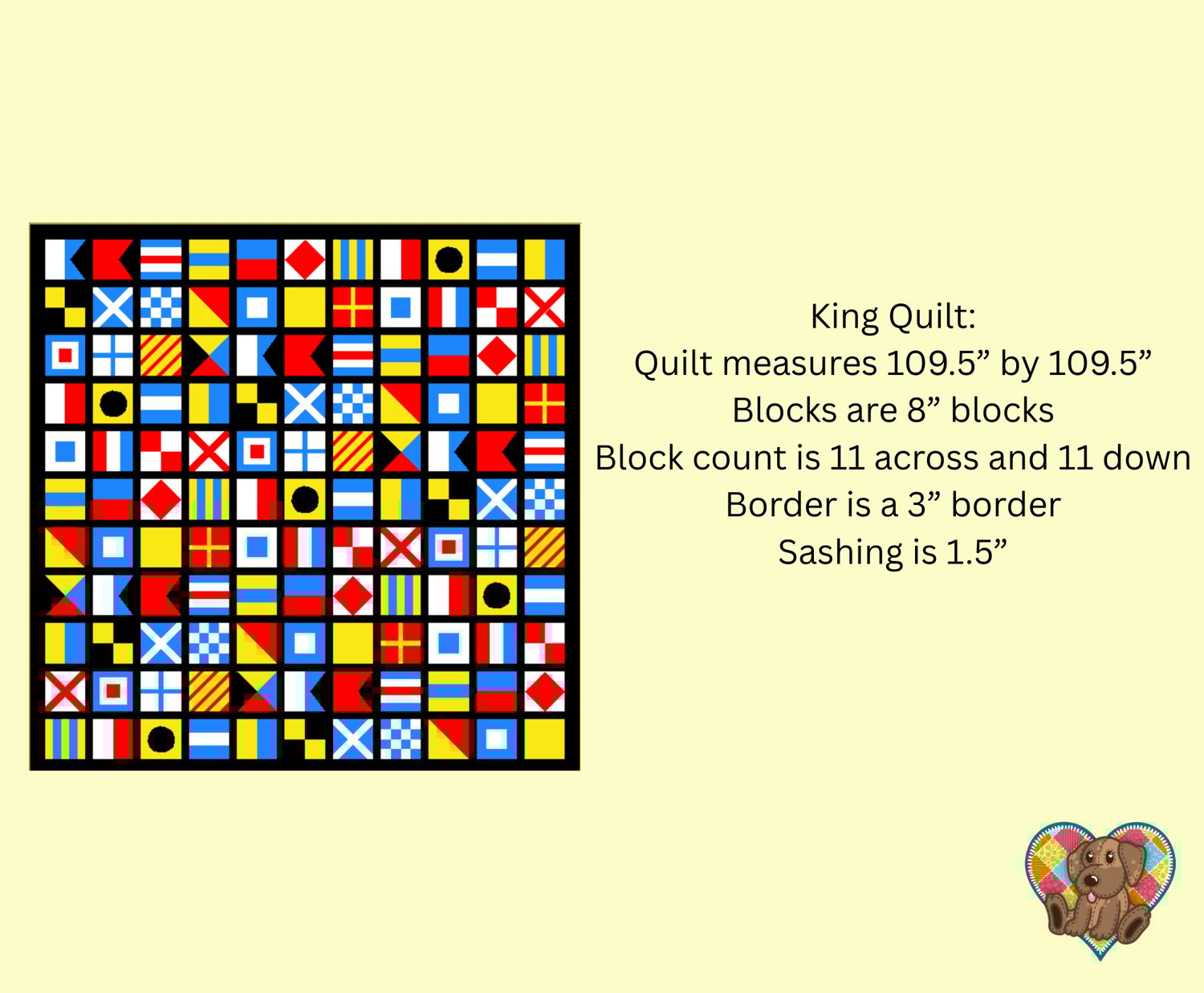 *Note: This pattern includes instructions for a baby (40" X 40"), lap (66.5" X 66.5"), twin (71.5" X 90.5"), queen (90.5" X 100"), and king (109.5" X 109.5") size quilt.* Quilt block size is 8" blocks.