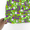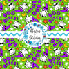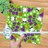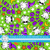 Sarcastic and sweary halloween ghosts wearing witch hats, with middle fingers moons and stars on green.