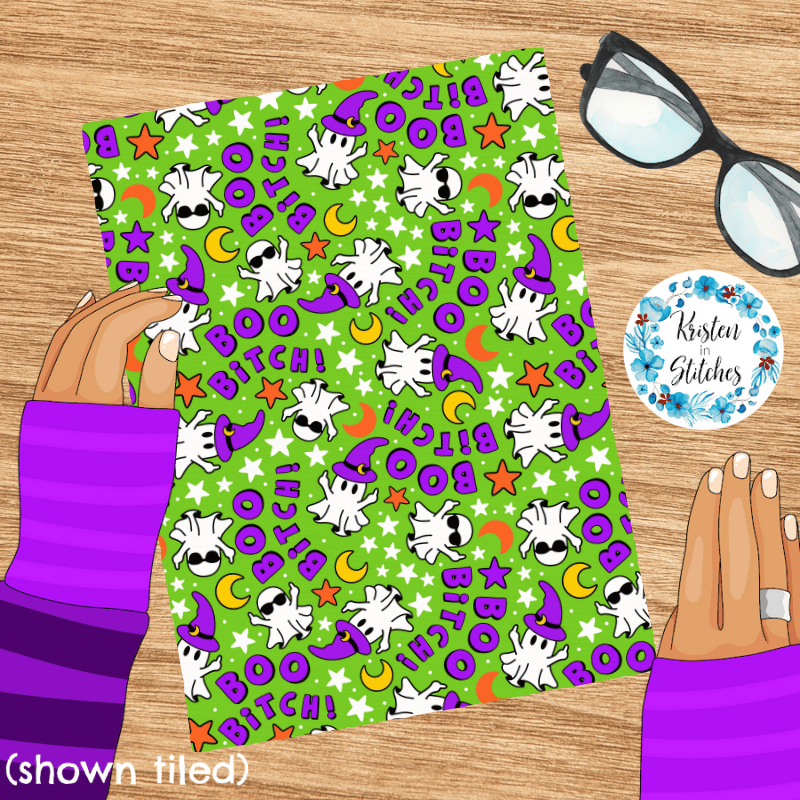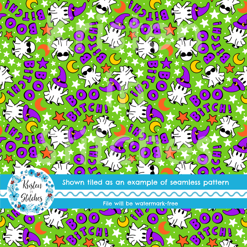 Boo Bitch! Sweary Sarcastic Halloween Ghosts Seamless Pattern