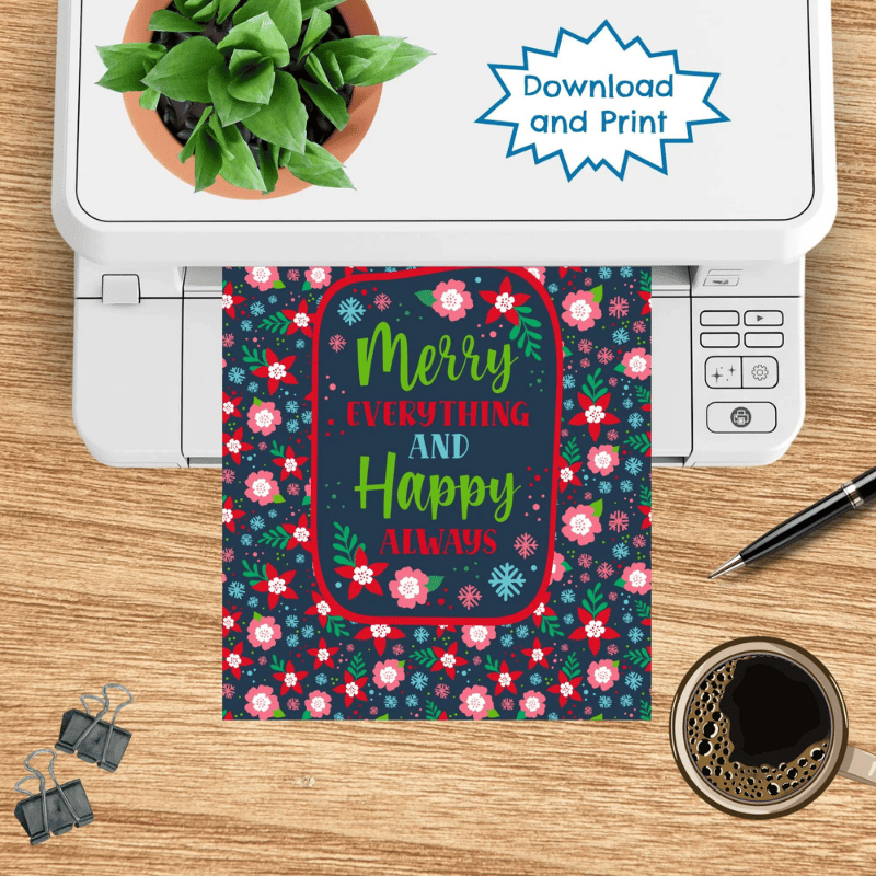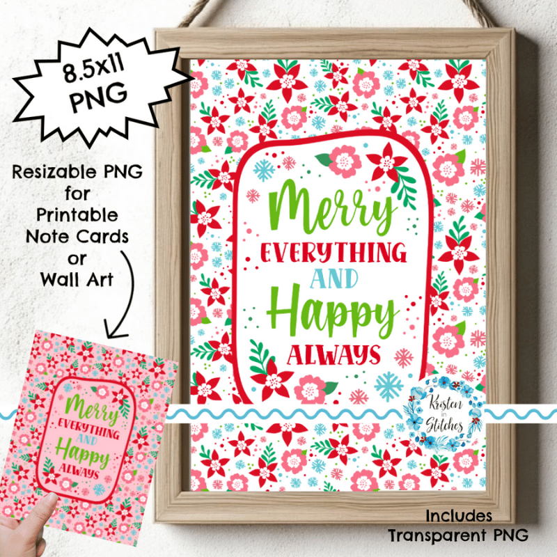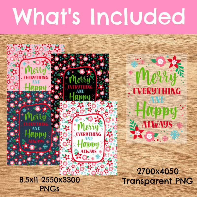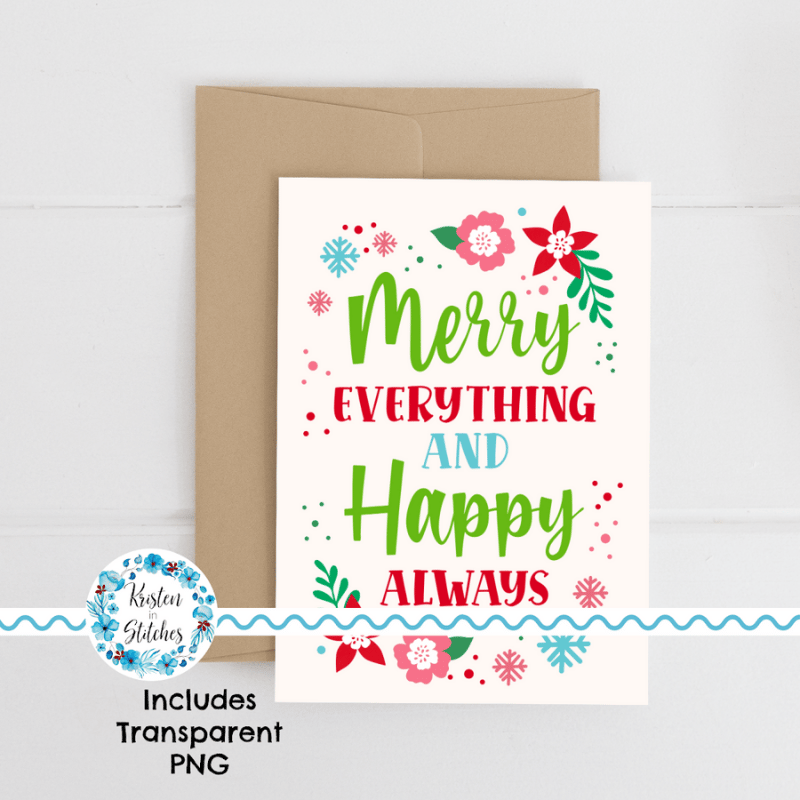 Printable Cards and Wall Art, PNG Transparent Graphics, Merry Everything and Happy Always