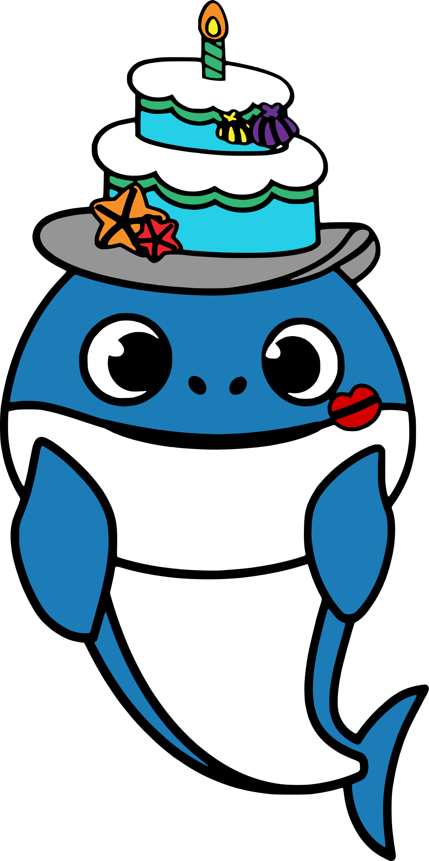 Blue Baby Shark with Birthday hat SVG & PNG Sublimation