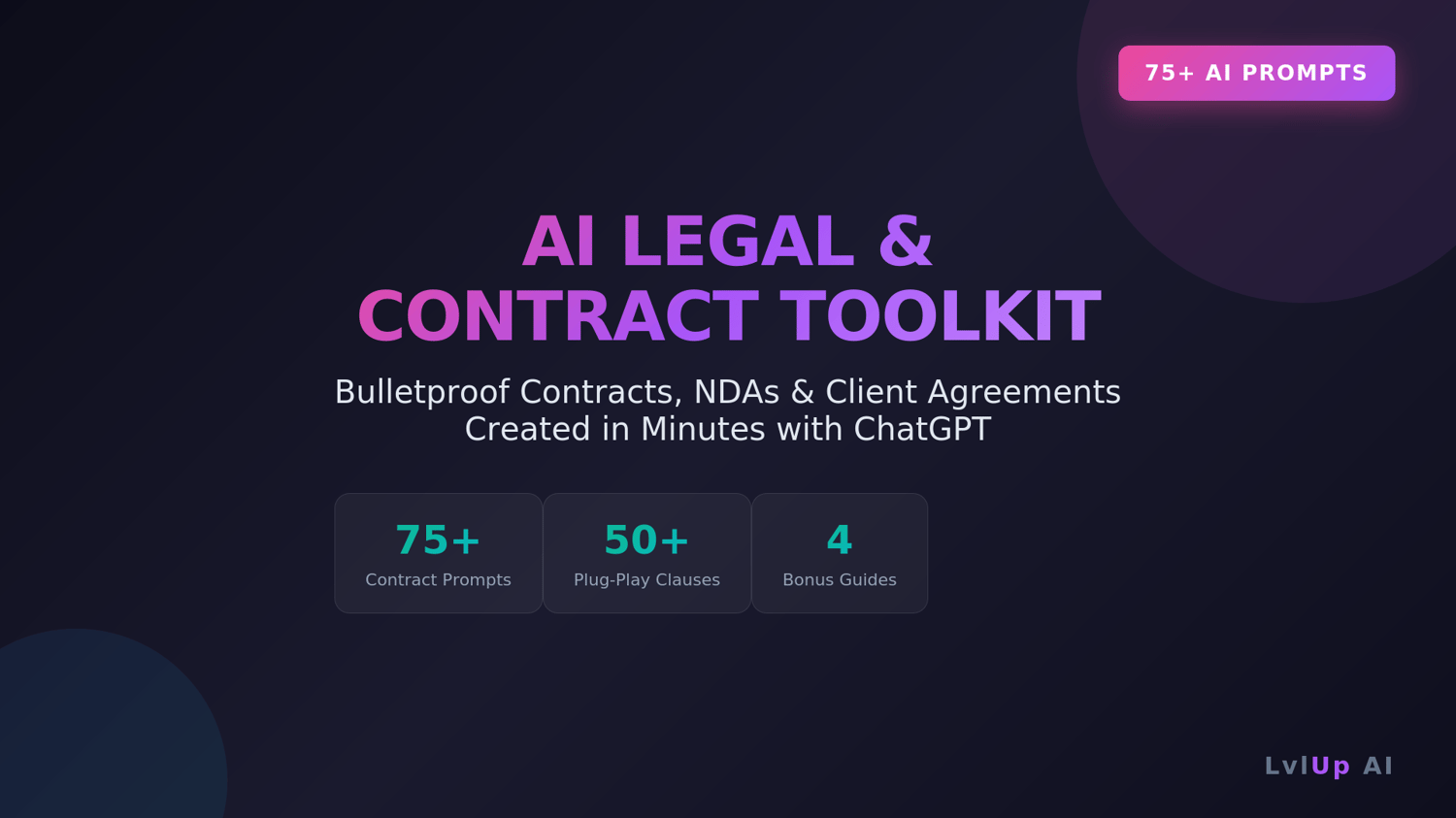 The AI Legal & Contract Toolkit gives you 75+ expertly crafted ChatGPT prompts that turn AI into your personal legal assistant — creating, reviewing, and customizing contracts for any business situation.