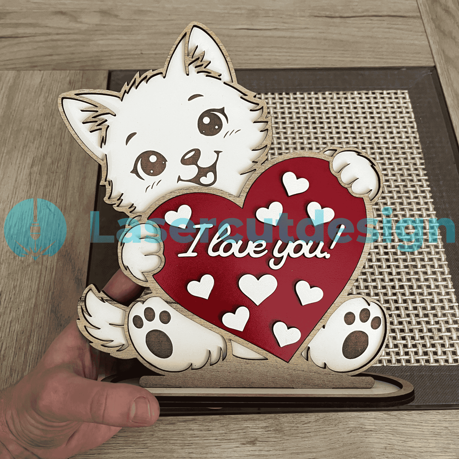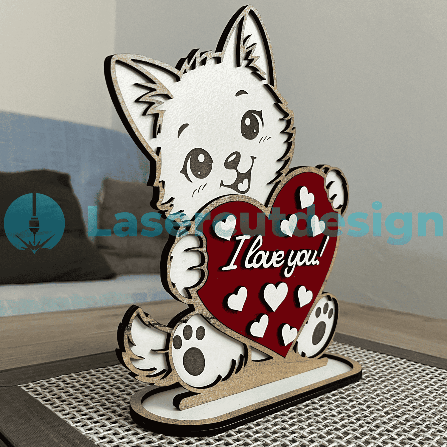 Valentine Cat SVG DXF AI | Cute Cat Laser Cut File | I Love You Heart Sign | Valentines Day Decor 3mm