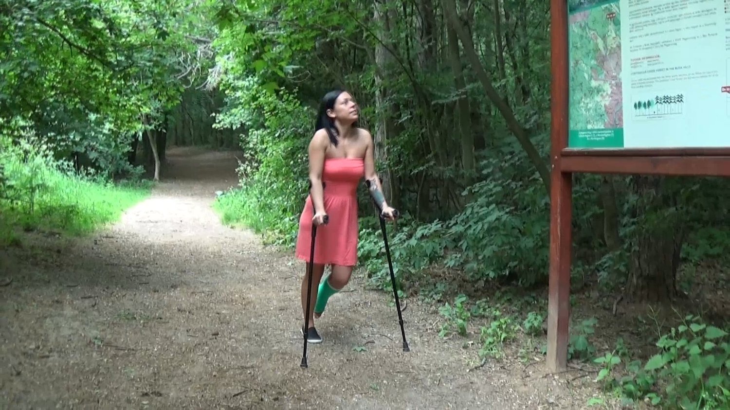 We meet Adriana in Budapest, where she resident.She is wearing a dress and low shoe when she crutch around with her green SLC