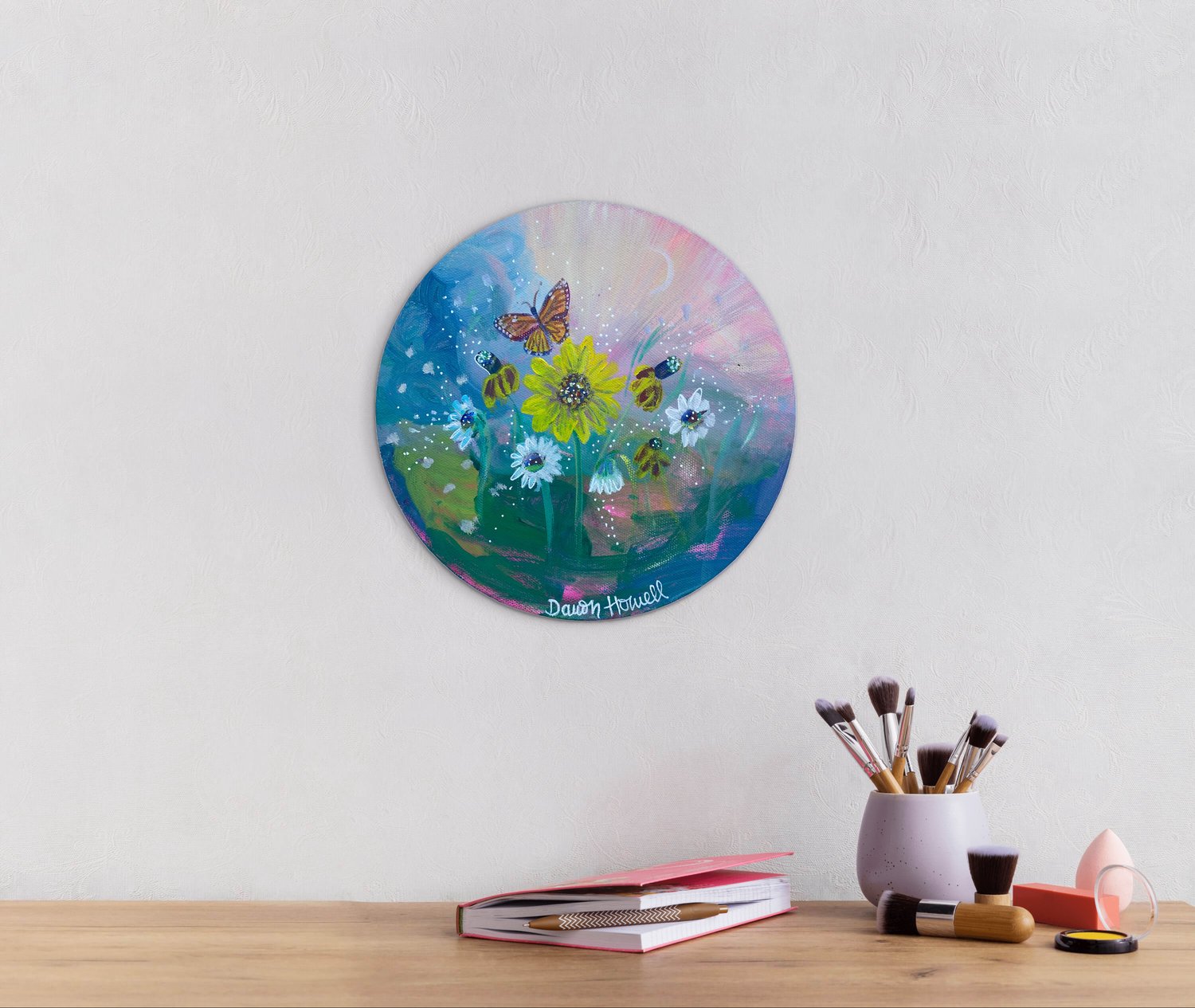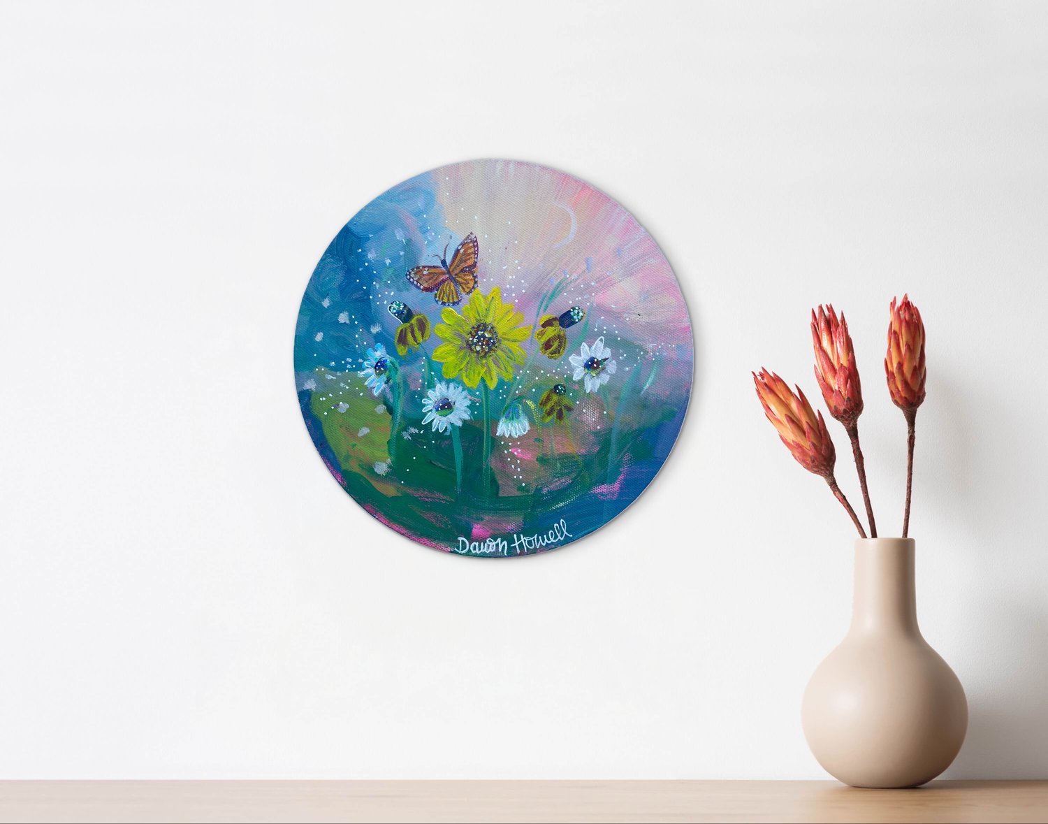 Medium: Acrylic on Canvas · Size: 8″ round · Year: 2025 · One of a kind original — only 1 available Ships from Dawn's studio in Texas, directly from the artist to your door.