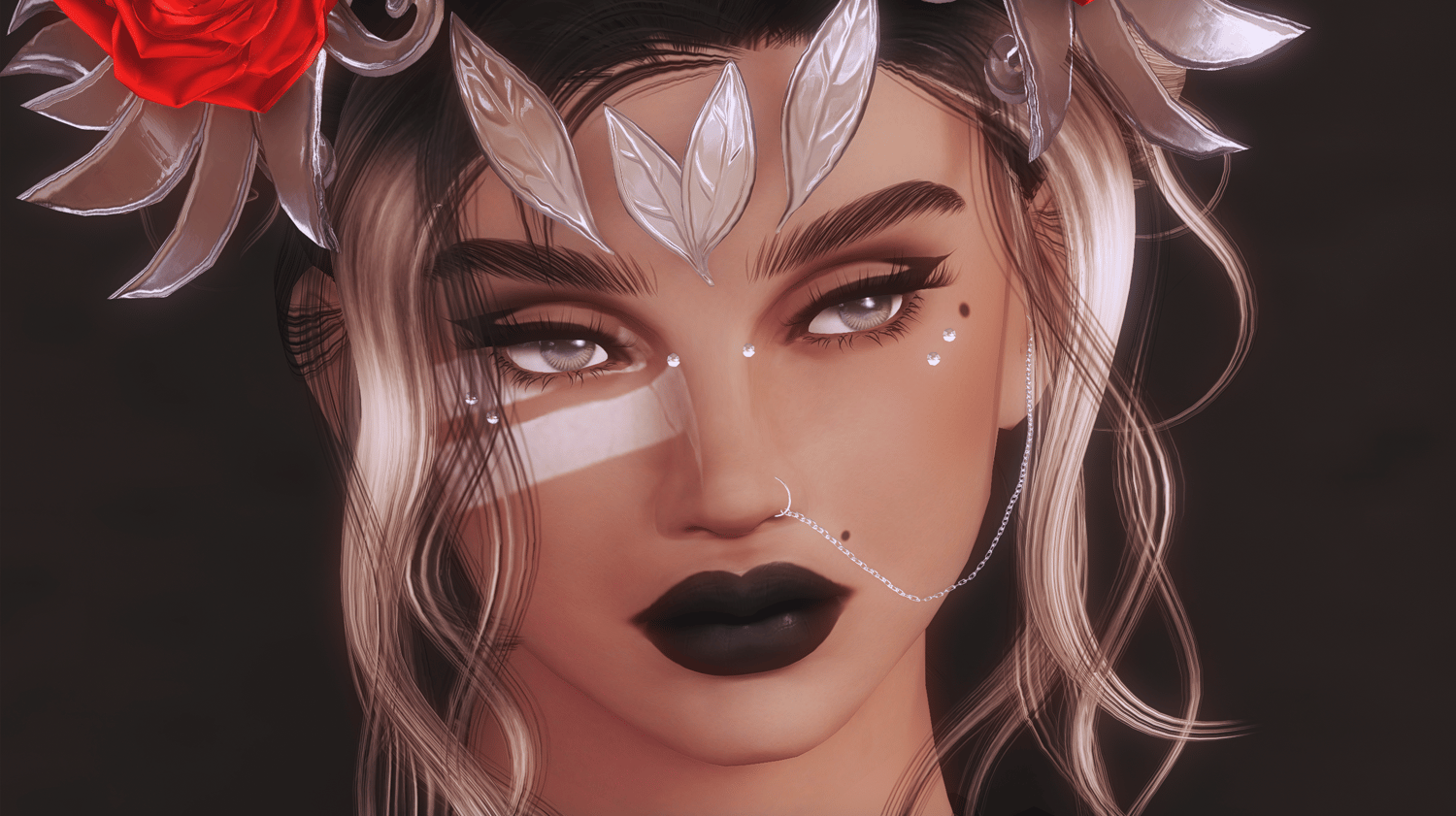 - 3 Facial piercing toggles (nose and left ear hoops, stud piercings & nose chain)