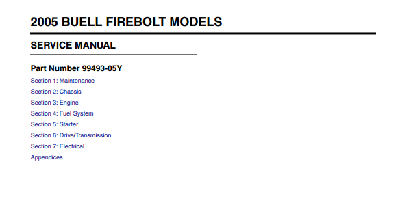 2005 Buell Firebolt Service Manual Part No. 99493-05Y