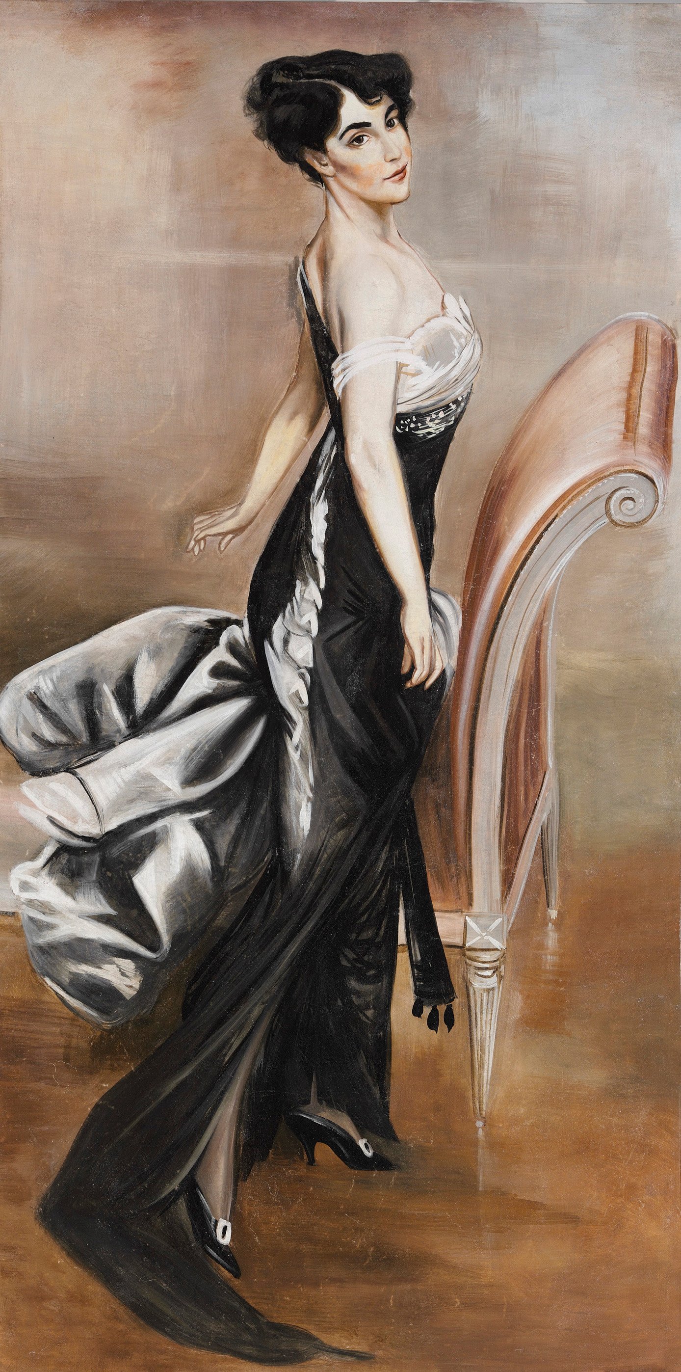 From1872 Boldini lived in Paris, where he became a friend of Edgar Degas. He also became the most fashionable portrait painter in Paris in the late 19th century, with a dashing style of painting which shows some Impressionist influence but which most closely resembles the work of his contemporaries John Singer Sargent and Paul Helleu. He was nominated commissioner of the Italian section of the Paris Exposition in 1889, and received the Legion d'honneur for this appointment. He died in Paris in 1931.