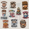 This charming collection features 10 unique, high-quality sticker designs with cute, original artwork and uplifting, coffee-themed phrases: